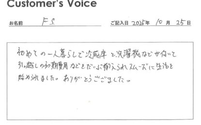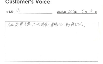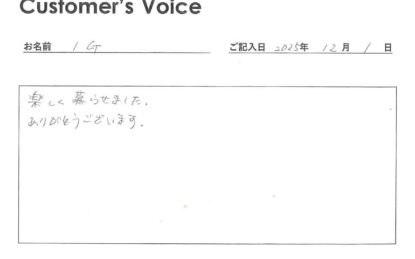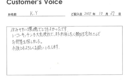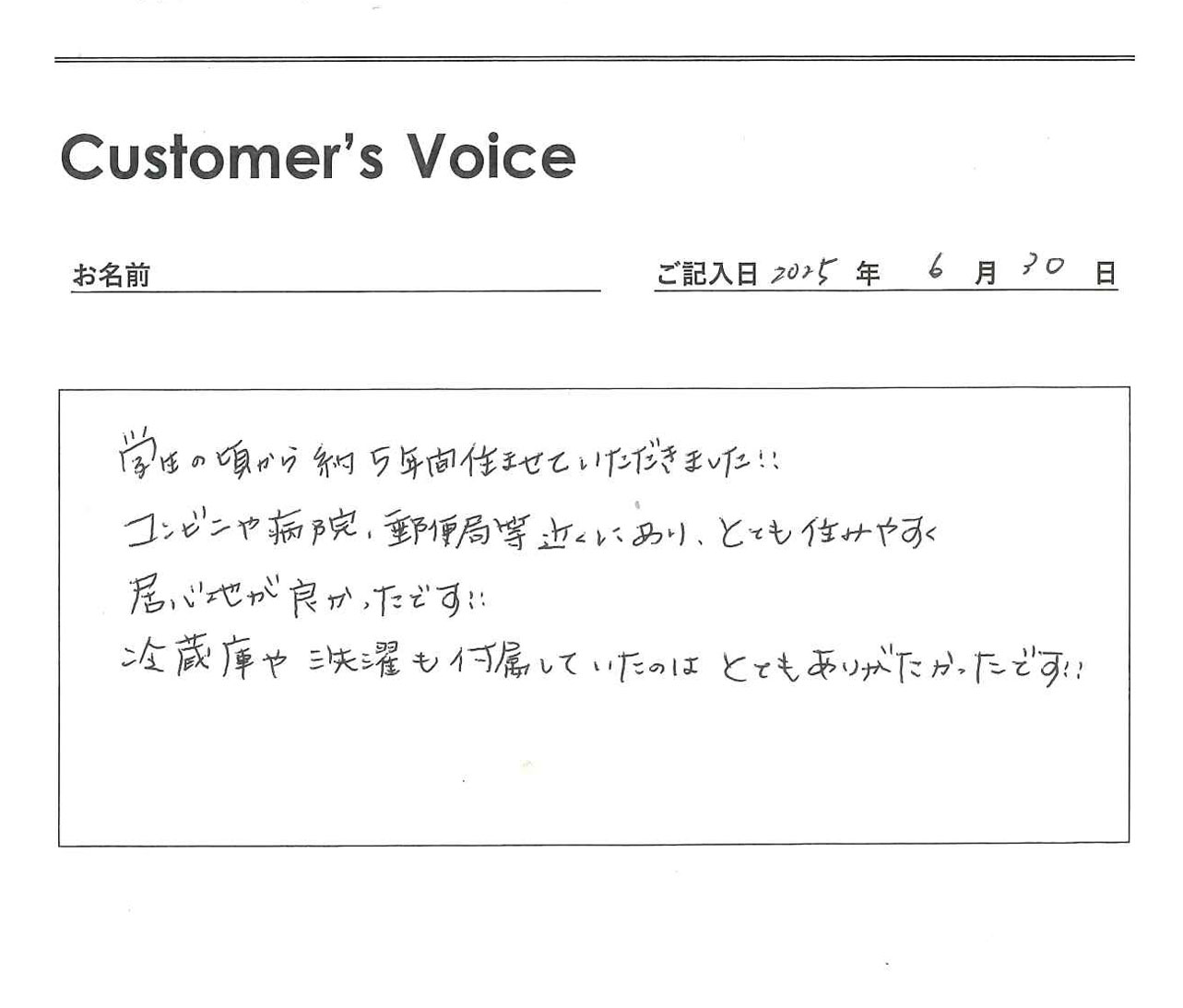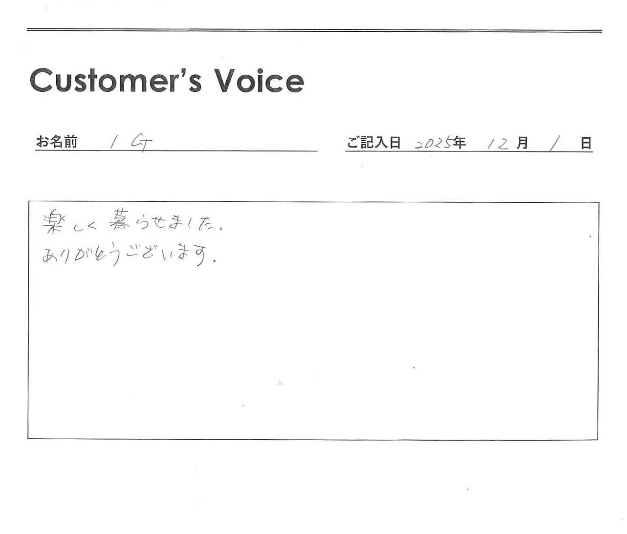 ◉この度はご入居ありがとうございました。社員寮的ご活用に向いている物件ではありますが、楽しく暮らしていただけたと聞き安心しました。今後ともよろしくお願い申し上げます!(二代目より)