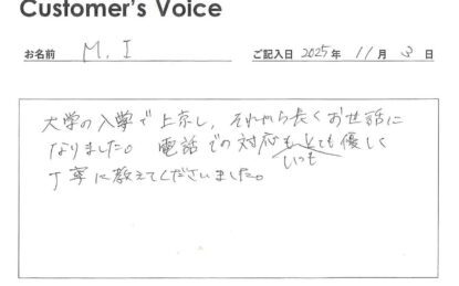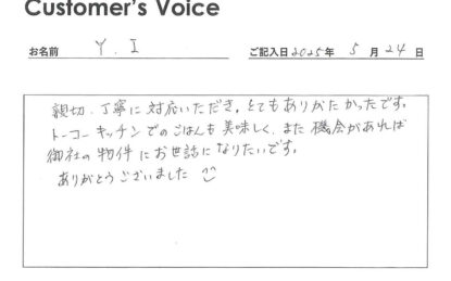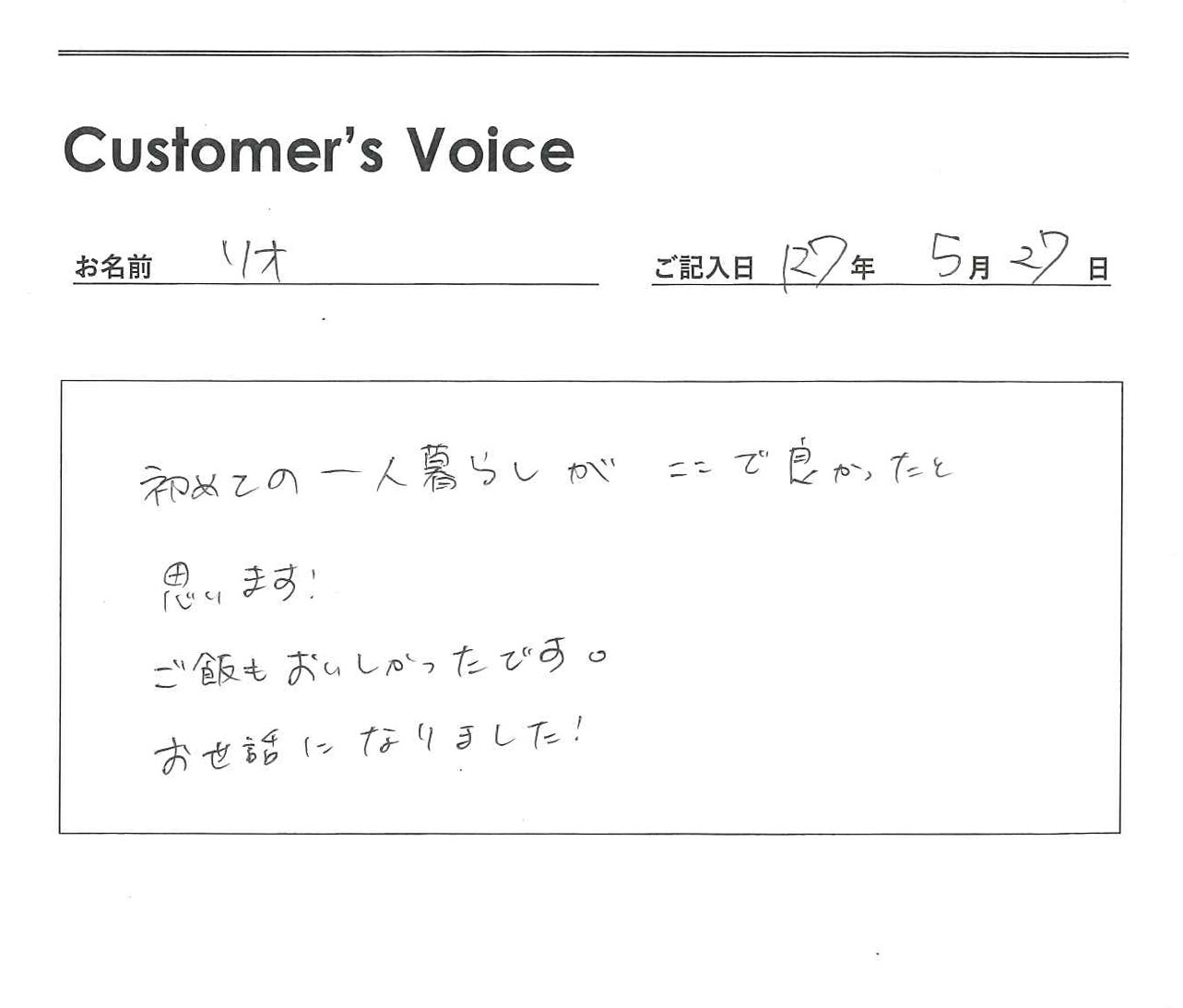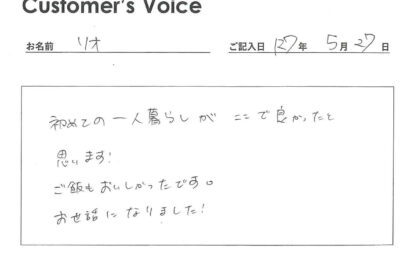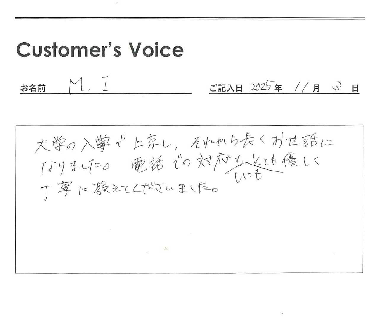 ◉Iさん、大学入学から卒業、そして、卒業後の社会人生活まで長きにわたりご入居いただき、こちらこそ本当にありがとうございました。新天地でもお元気にお過ごしください!(二代目より)