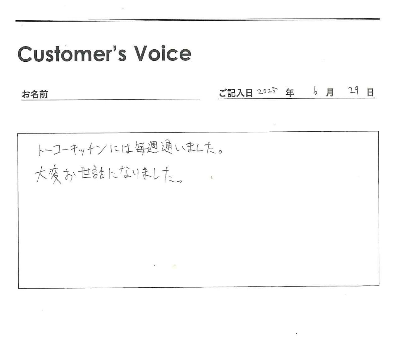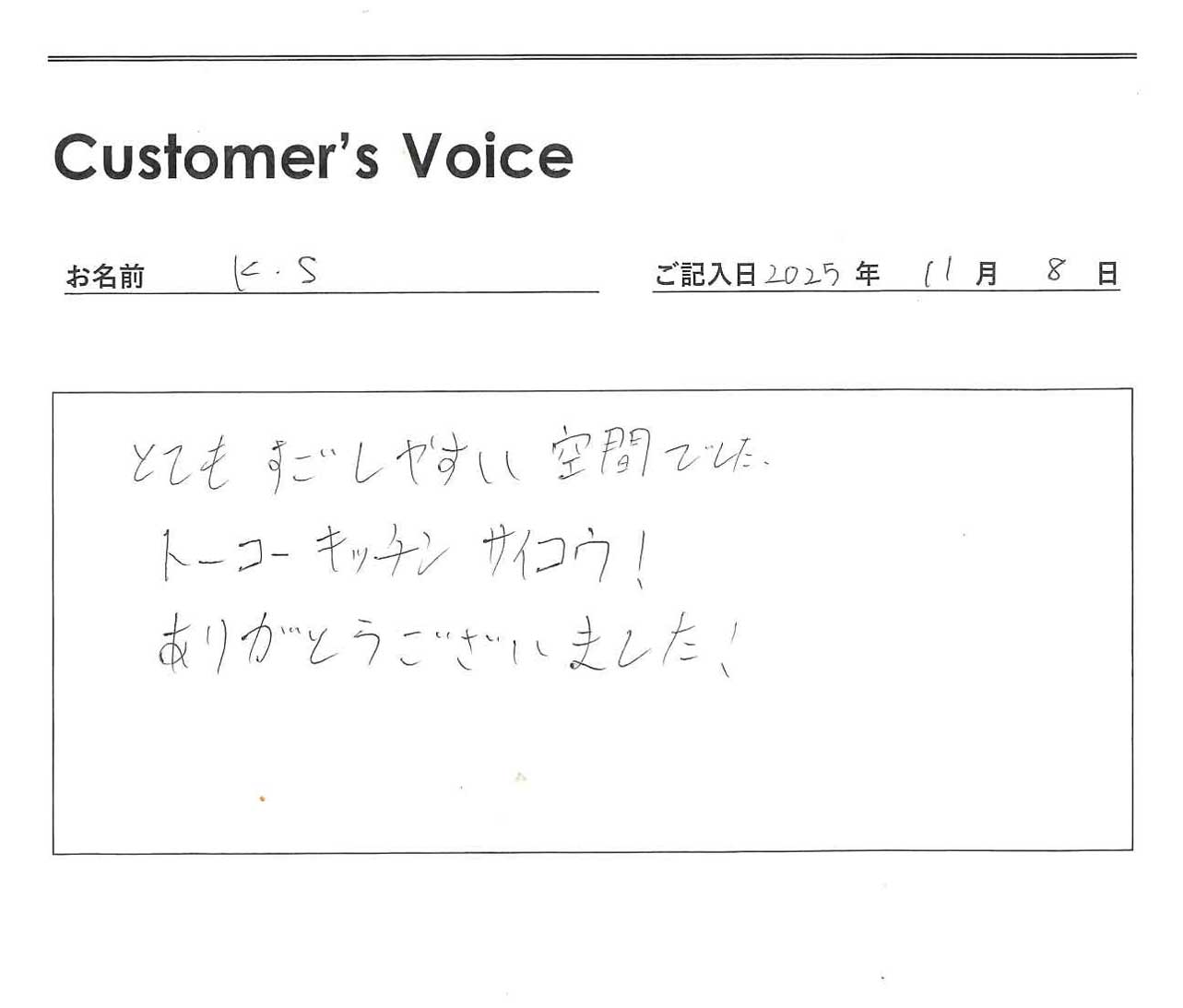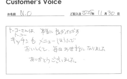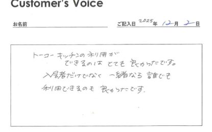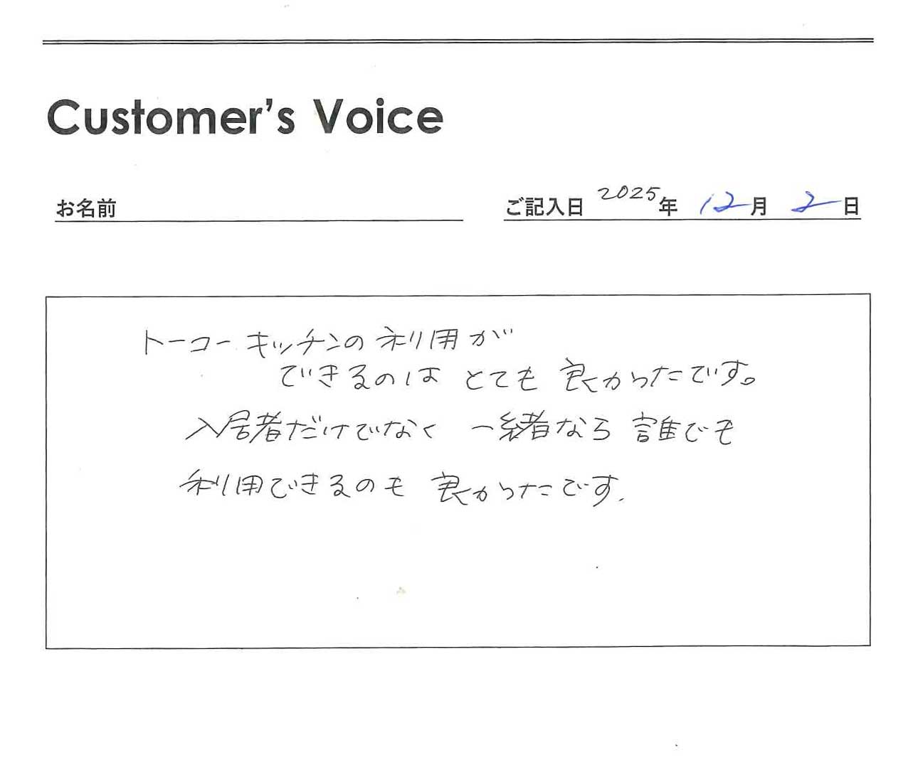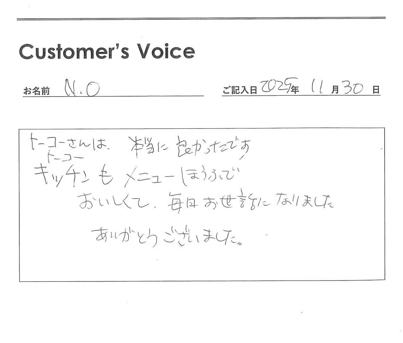 ◉「トーコーキッチン サイコウ!」とのお言葉ありがとうございます。励みにさせていただき、これからも入居者の皆さんに「サイコウ!」と言っていただけるよう精進します!(二代目より)