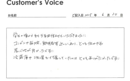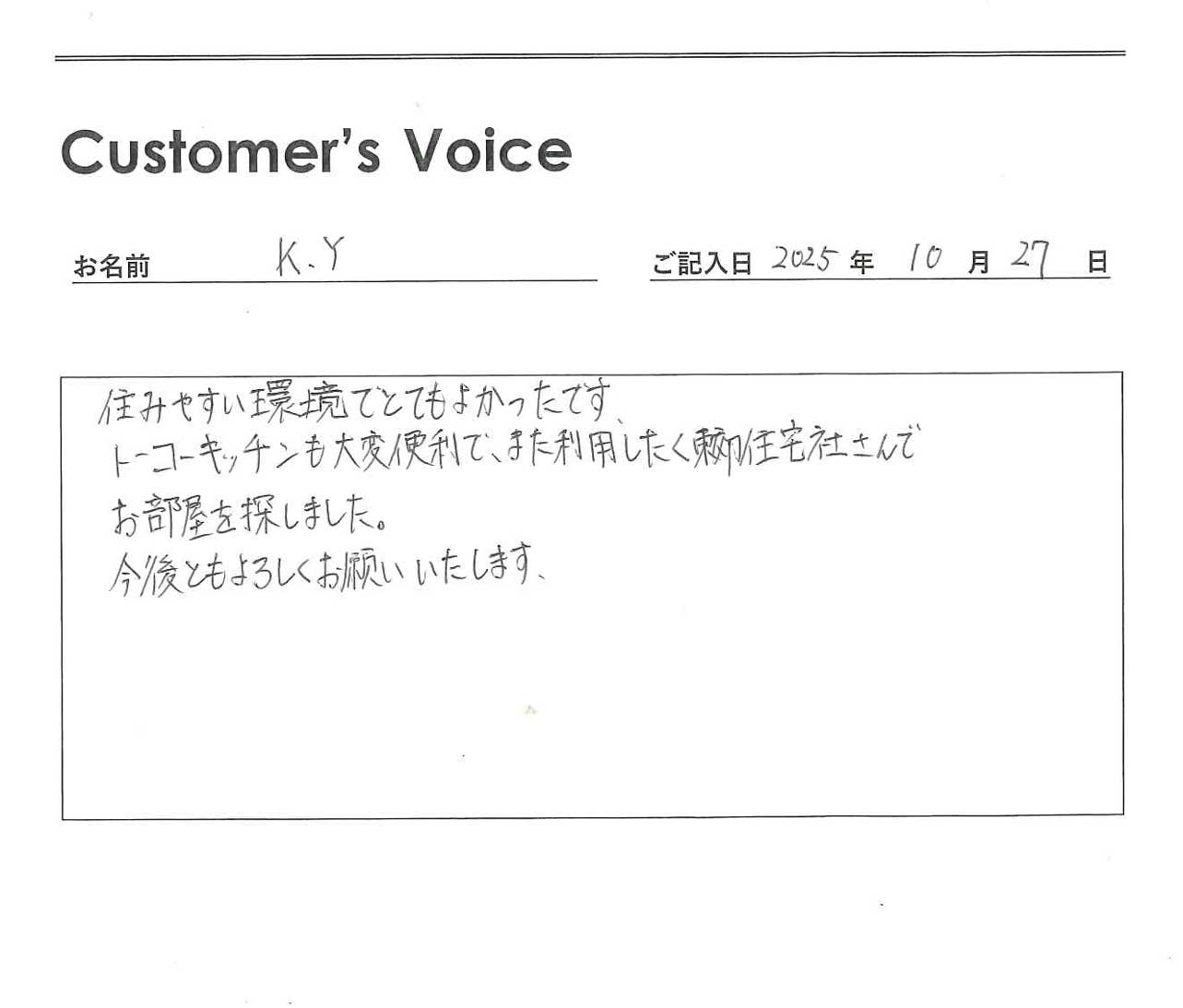 ◉この度は弊社管理物件内で住み替えをしていただき誠にありがとうございます。管理会社冥利、不動産屋冥利に尽きます。私どもこそ、今後ともよろしくお願い申し上げます!(二代目より)