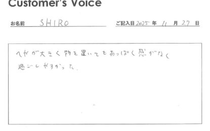 ◉Nくん、ありがとう。こちらこそ、Nくんが入居してくれて本当に良かったです。さびしくなるけど、益々のご活躍を心から楽しみにしてます。お父さん・お母さんにもよろしくね!(二代目より)