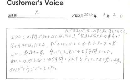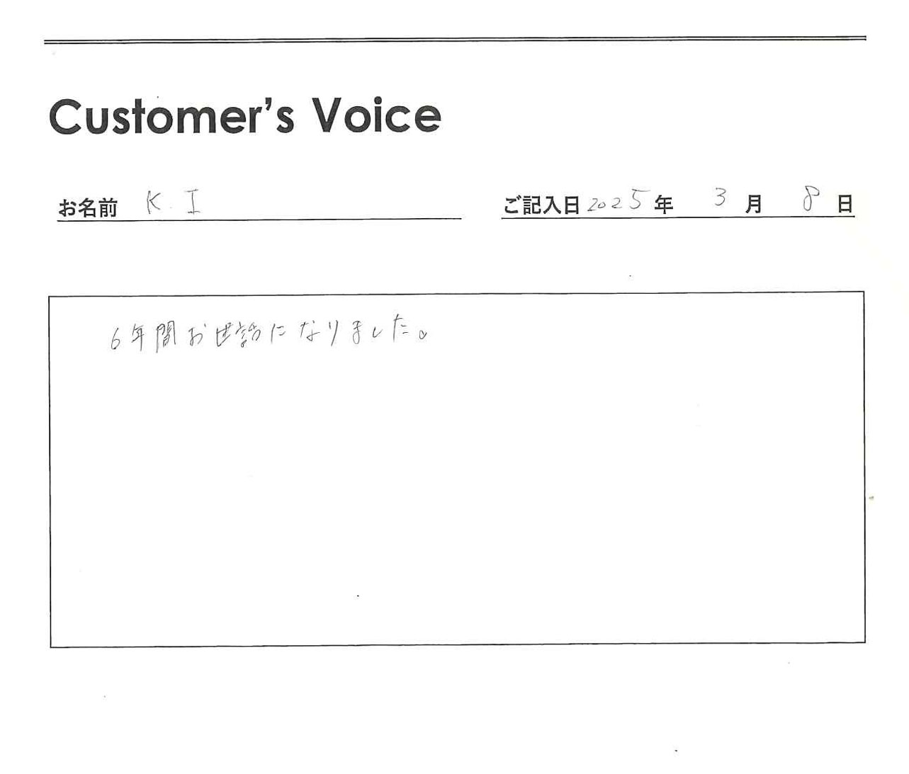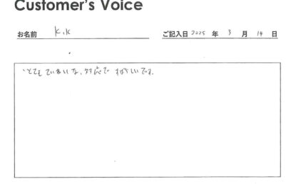 ◉Kくん、ありがとう。きちんと丁寧に対応できているかどうかはスタッフ一同とても気にしていることなので、みんなで共有して、これらからの励みにさせてもらいます!(二代目より)