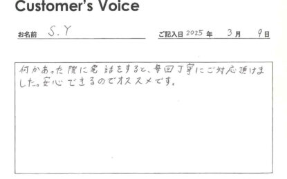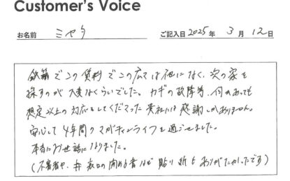 ◉Sさん、オススメしてくれてありがとう。こちらこそ、何かあった際にはまず東郊住宅社を頼ってくれて本当にうれしかったです。ありがとう。管理会社冥利に尽きます!(二代目より)