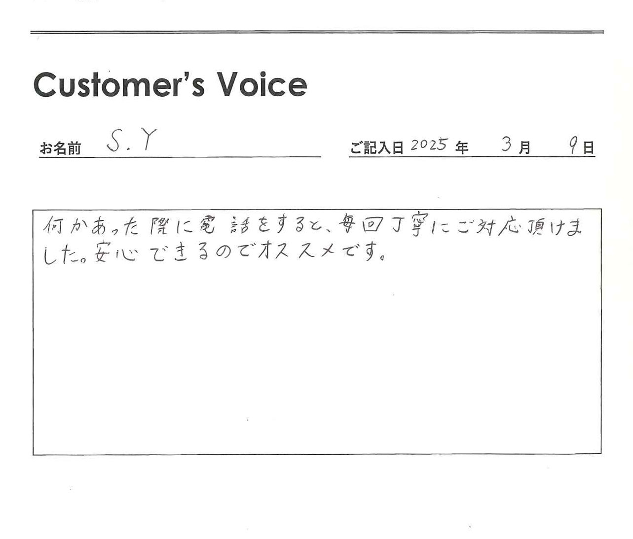 丁寧な対応ですばらしい!