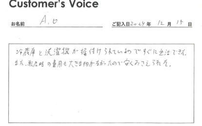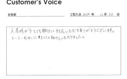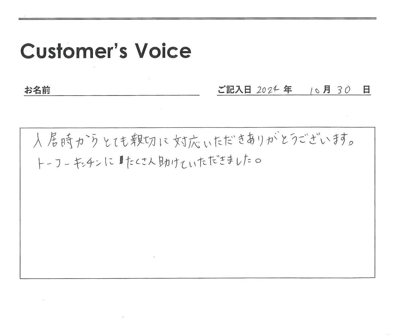 ◉この度はご入居ありがとうございました。また、お勤めにも関わらず、トーコーキッチンをご愛用いただき感謝申し上げます。新天地でのご活躍をお祈り申し上げます!(二代目より)