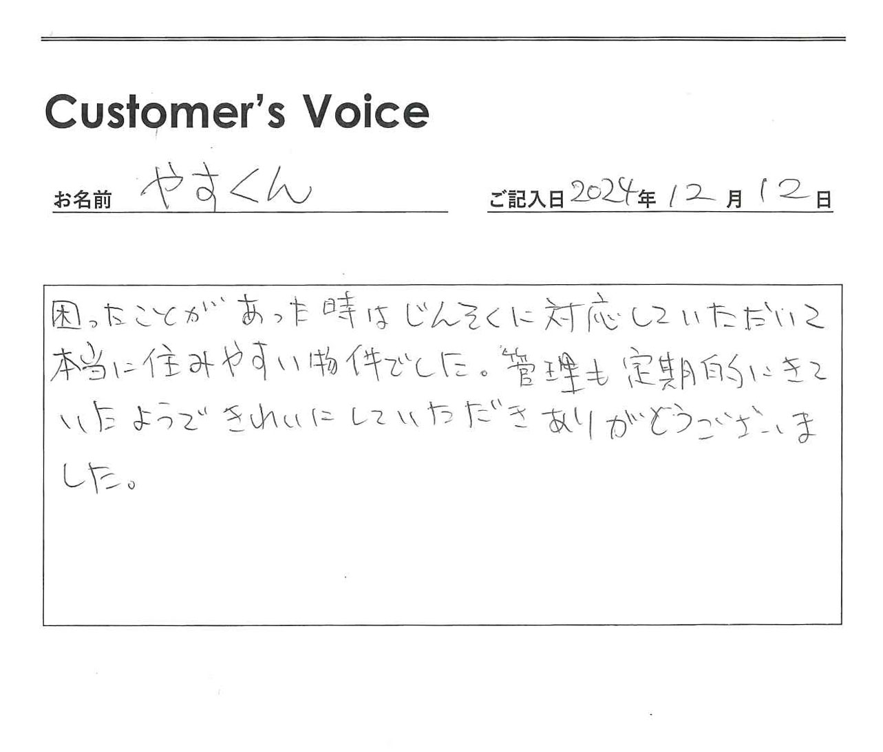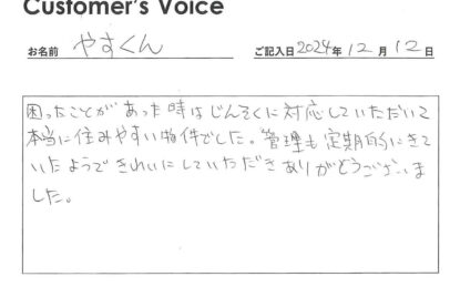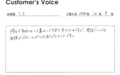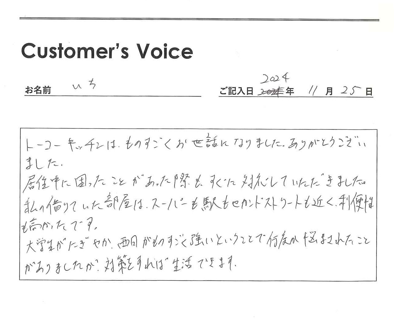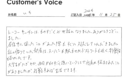 ◉Tさん、そんな言ってもらえて、管理会社冥利に尽きます。ありがとう。トーコーキッチンに加えて、ゴーヨーキーキーも活用してもらえてうれしかったです。元気でね!(二代目より)