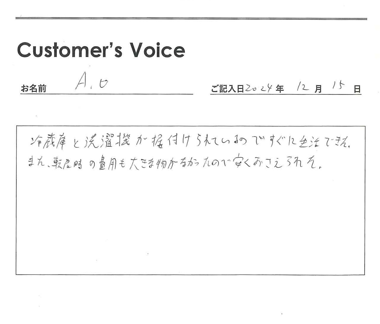 ◉Aくん、さすがの素晴らしい着眼点です。そうなんです、冷蔵庫・洗濯機が設備ということは、入居する時だけはでなく、退室する時も費用がグッと抑えられるんです!(二代目より)