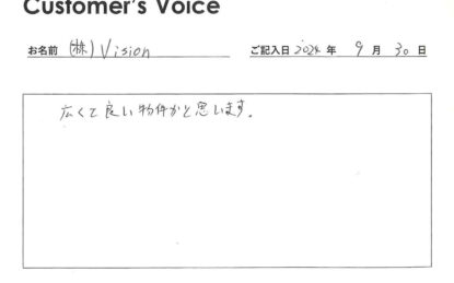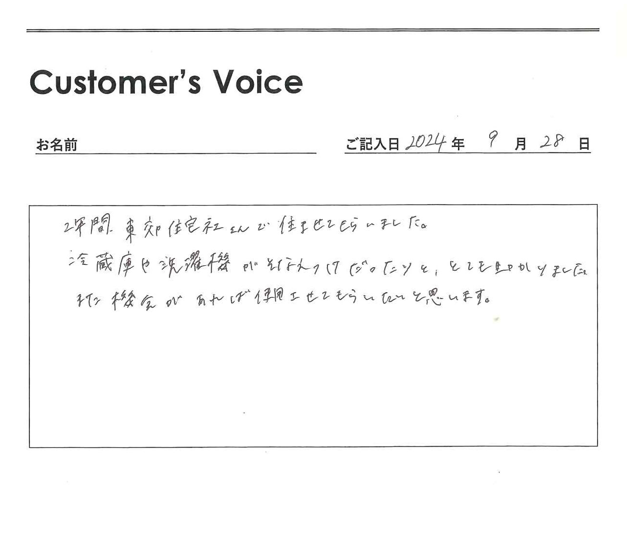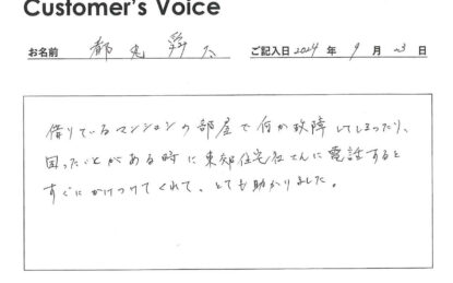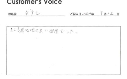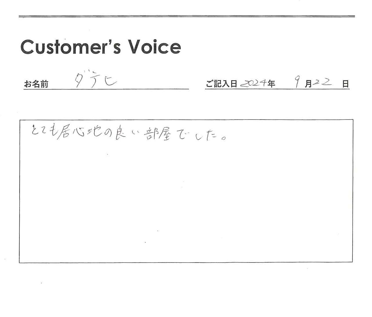 ◉Yさん、ご入居中には不具合でご迷惑をおかけしたこともありましたのにも関わらず、身に余るお言葉をありがとうございます。これからの励みにさせていただきます!(二代目より)