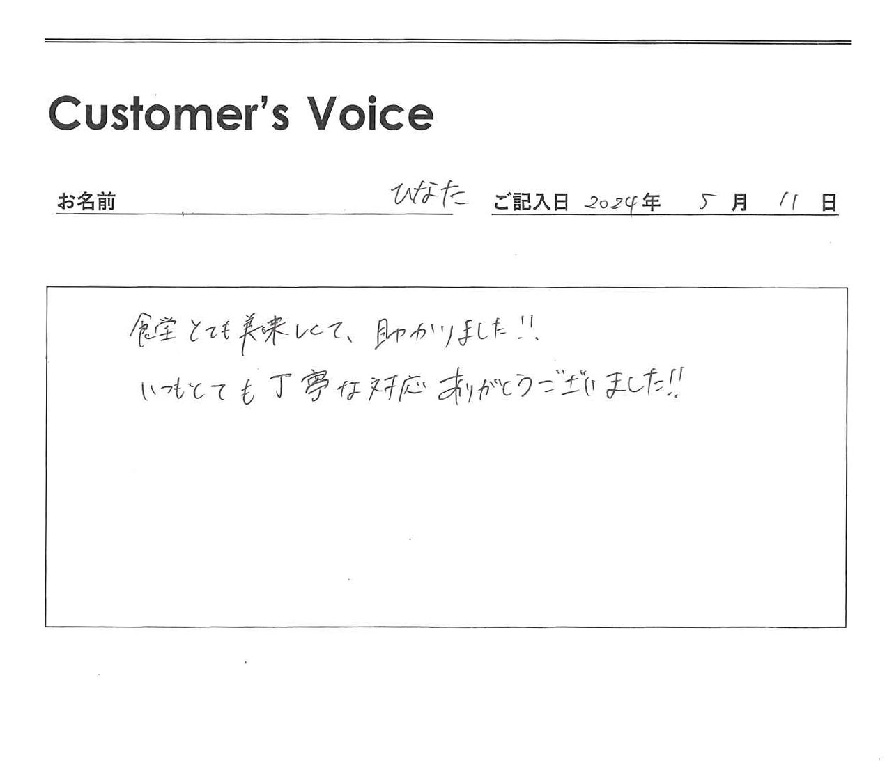 ◉ひなたちゃん、こちらこそ、ご入居ありがとうございました。食堂で見かけることがなくなっちゃうのは寂しいけど、新生活での活躍を淵野辺からお祈りしています!(二代目より)
