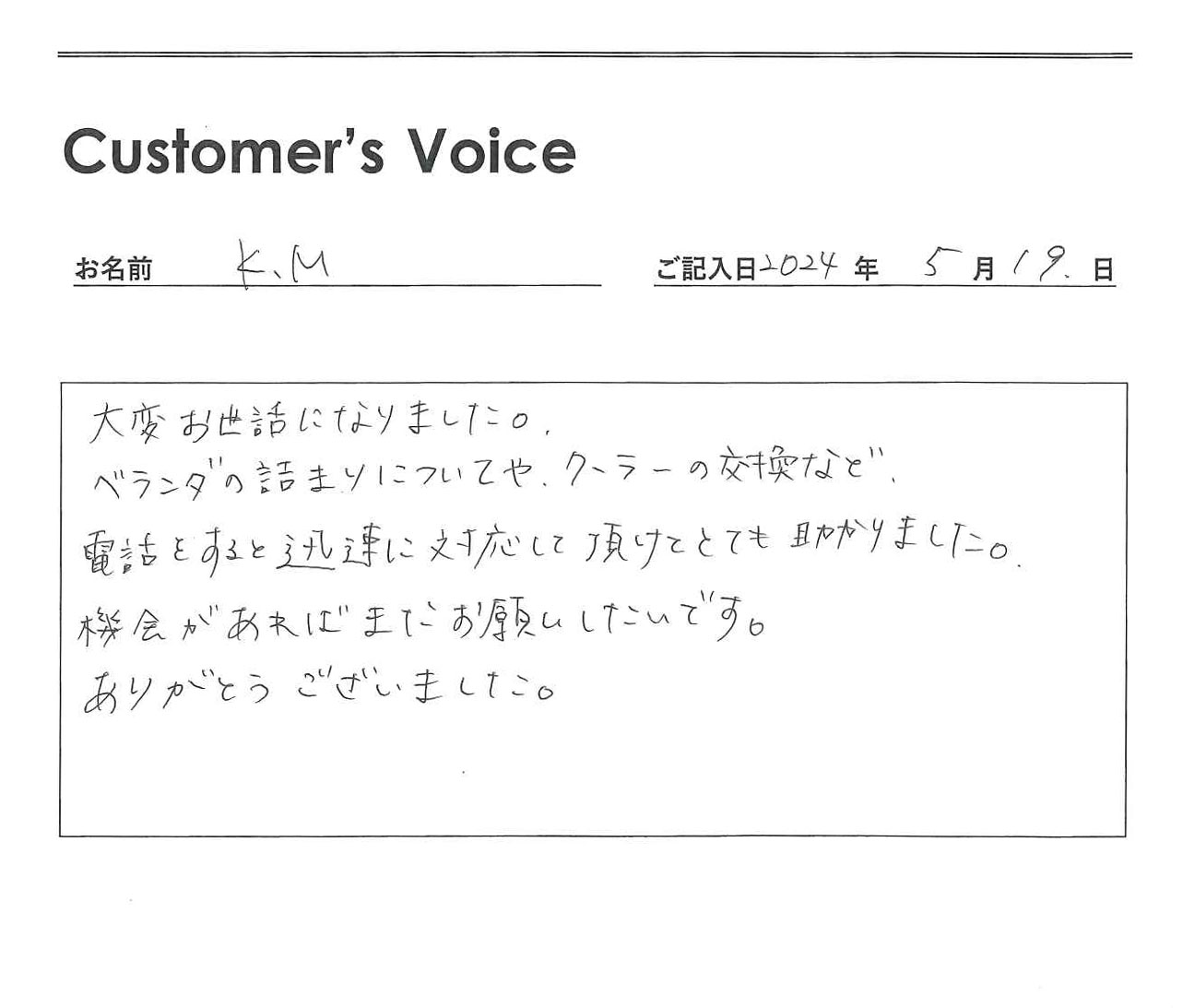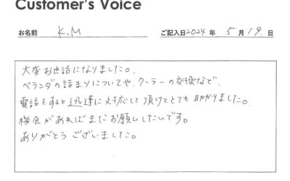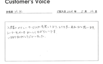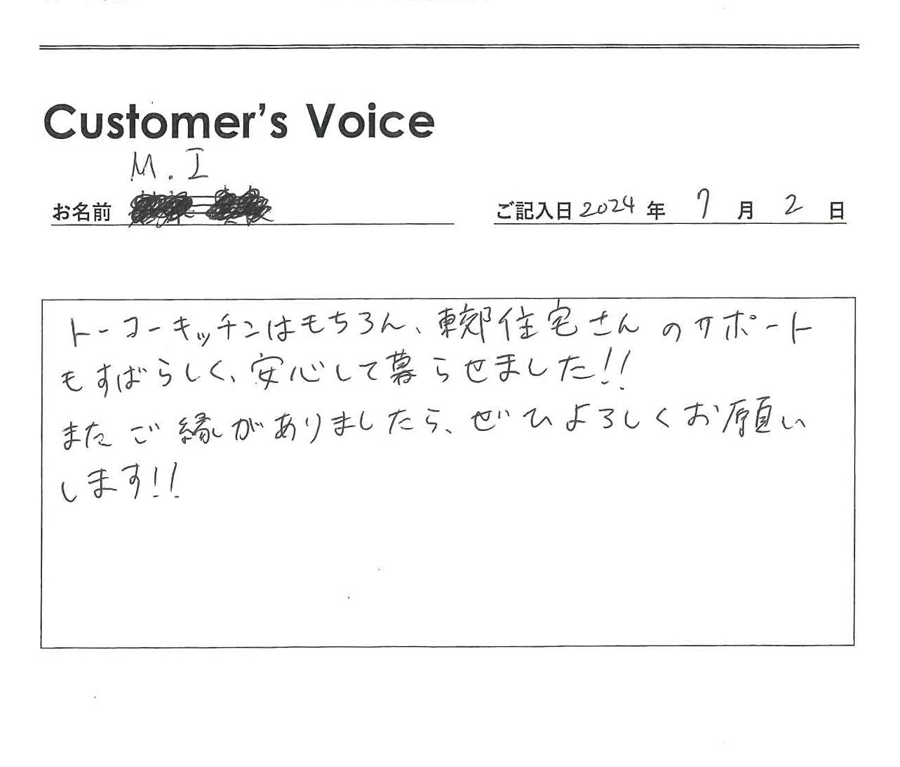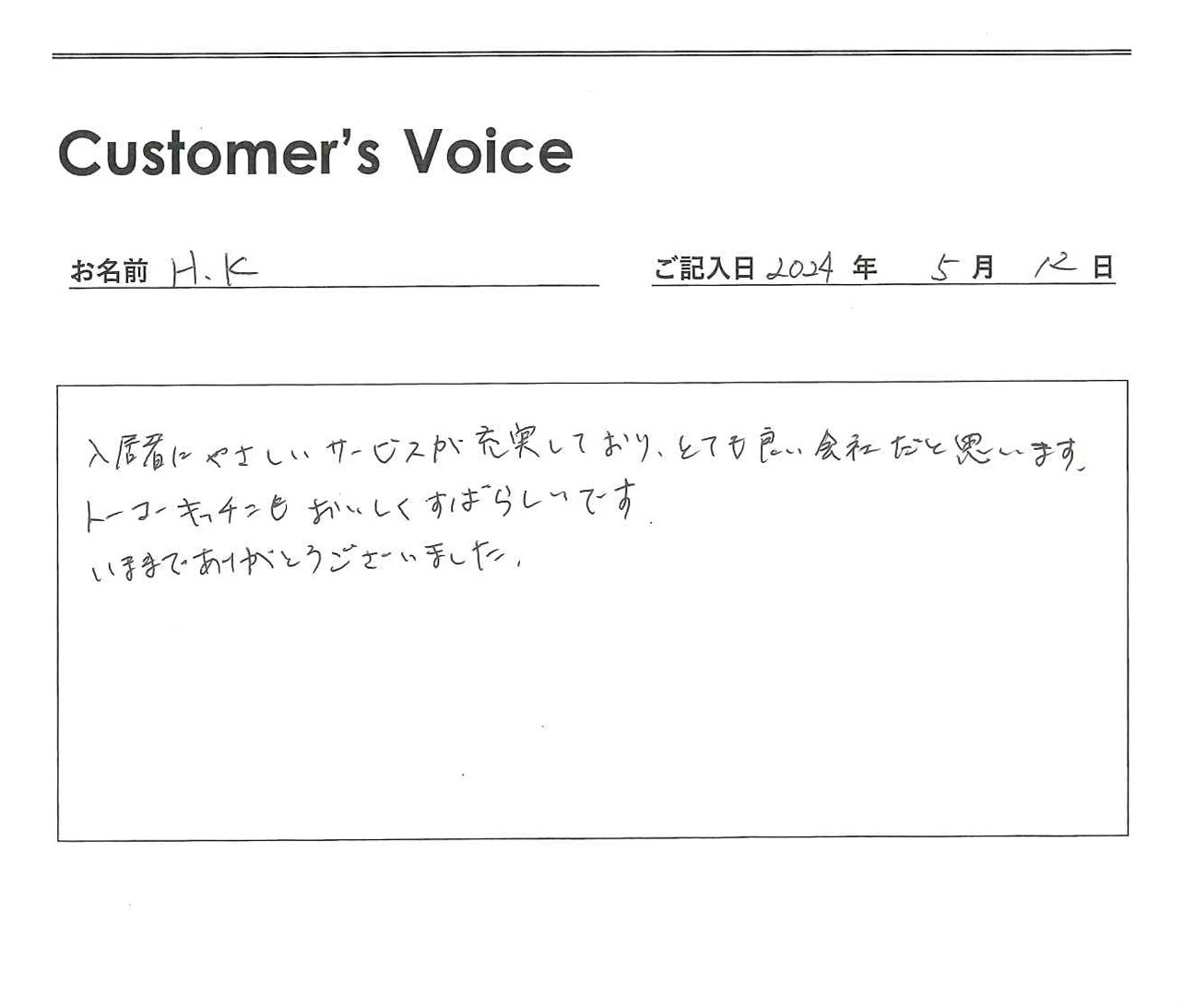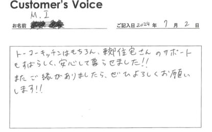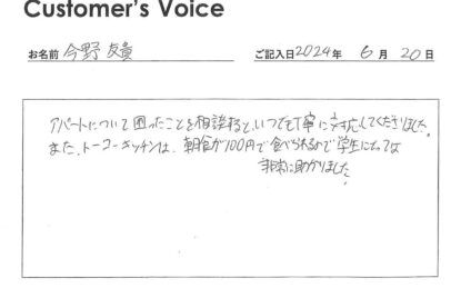 ◉Mさんのご入居途中から当社が管理させていただくことになった物件でしたので、対応にご満足いただけたようで何より安心しました。ご縁をありがとうございました!(二代目より)