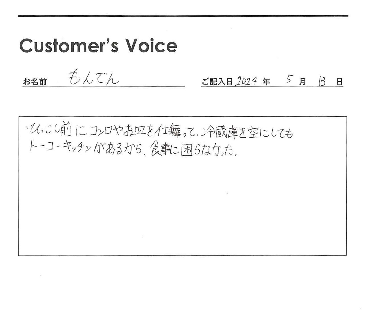 ◉もんでんくん、素晴らしいフィードバックをありがとう。トーコーキッチンさえあれば、もしかしたらキッチンのない部屋でも生活に困らず快適に暮らせるかも?!(二代目より)