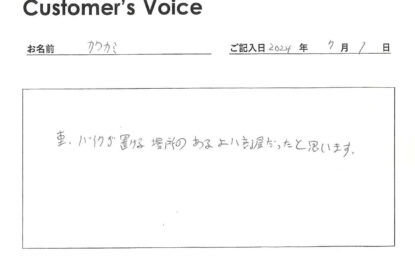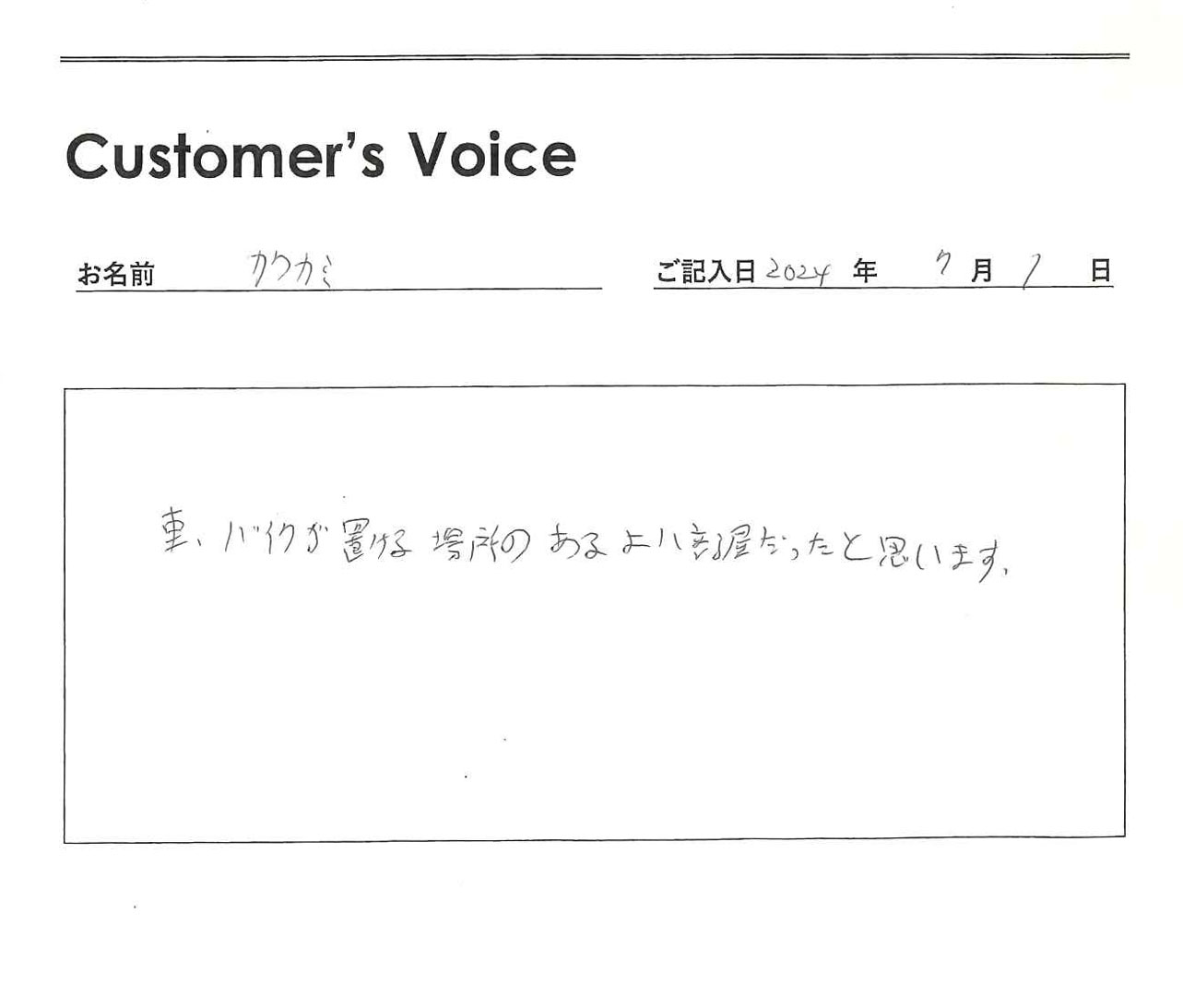 ◉車とバイクがゆったりおける広々とした敷地内駐車場が特徴的な物件でしたので、気に入っていただけて良かったです。安全運転で素敵なカーライフをお送りください!(二代目より)