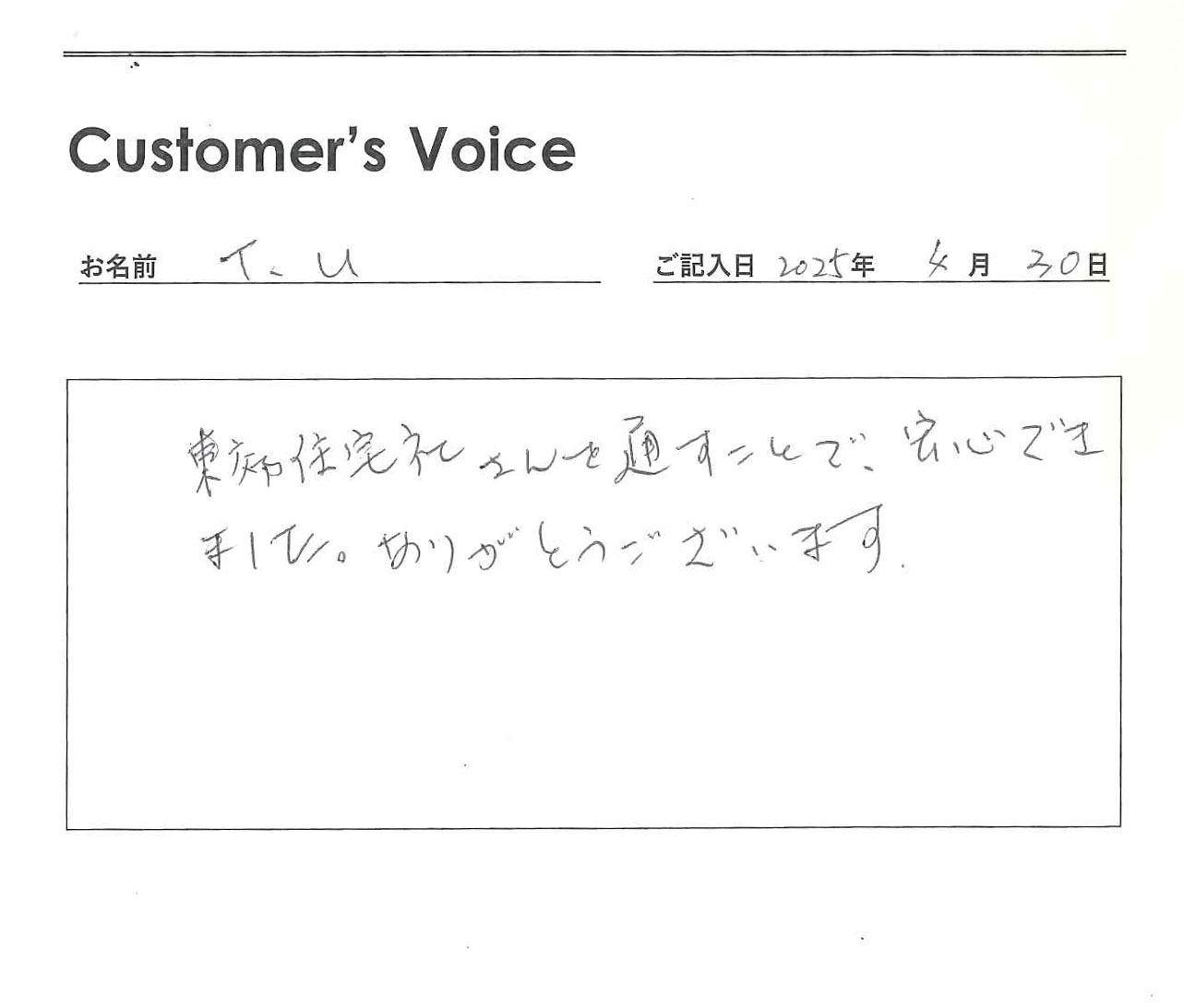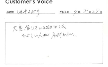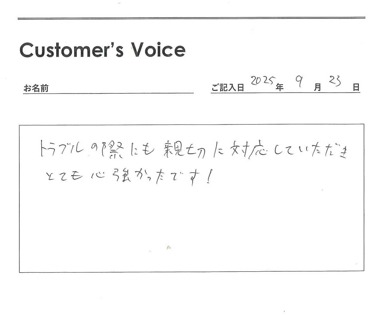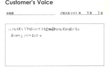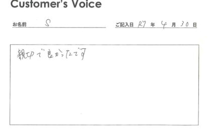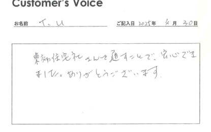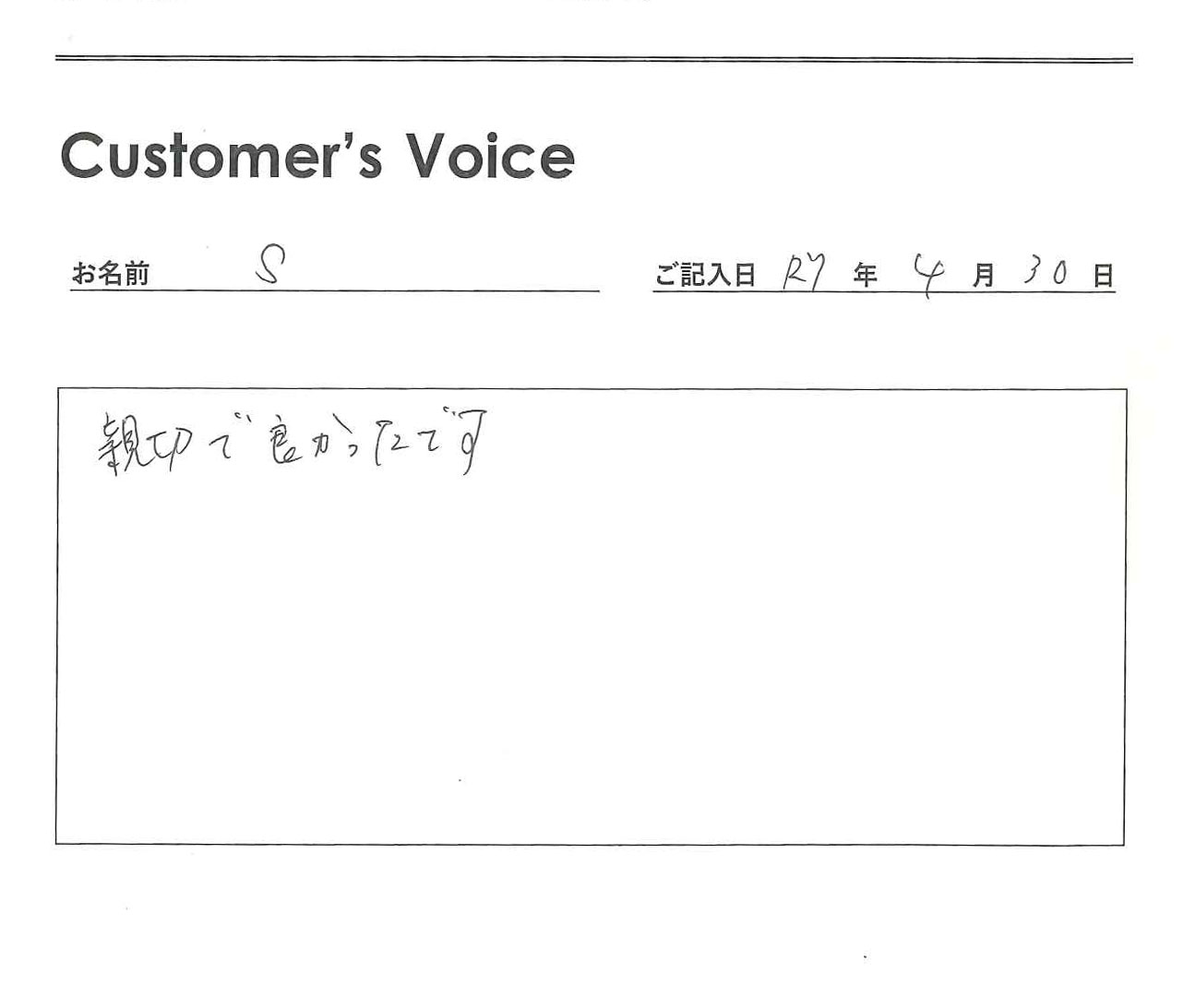◉Mさん、この度は店舗でのご入居を誠にありがとうございました。いただいたコメントはスタッフで共有し、励みにさせていただきます。またのご縁をお待ちしております!(二代目より)