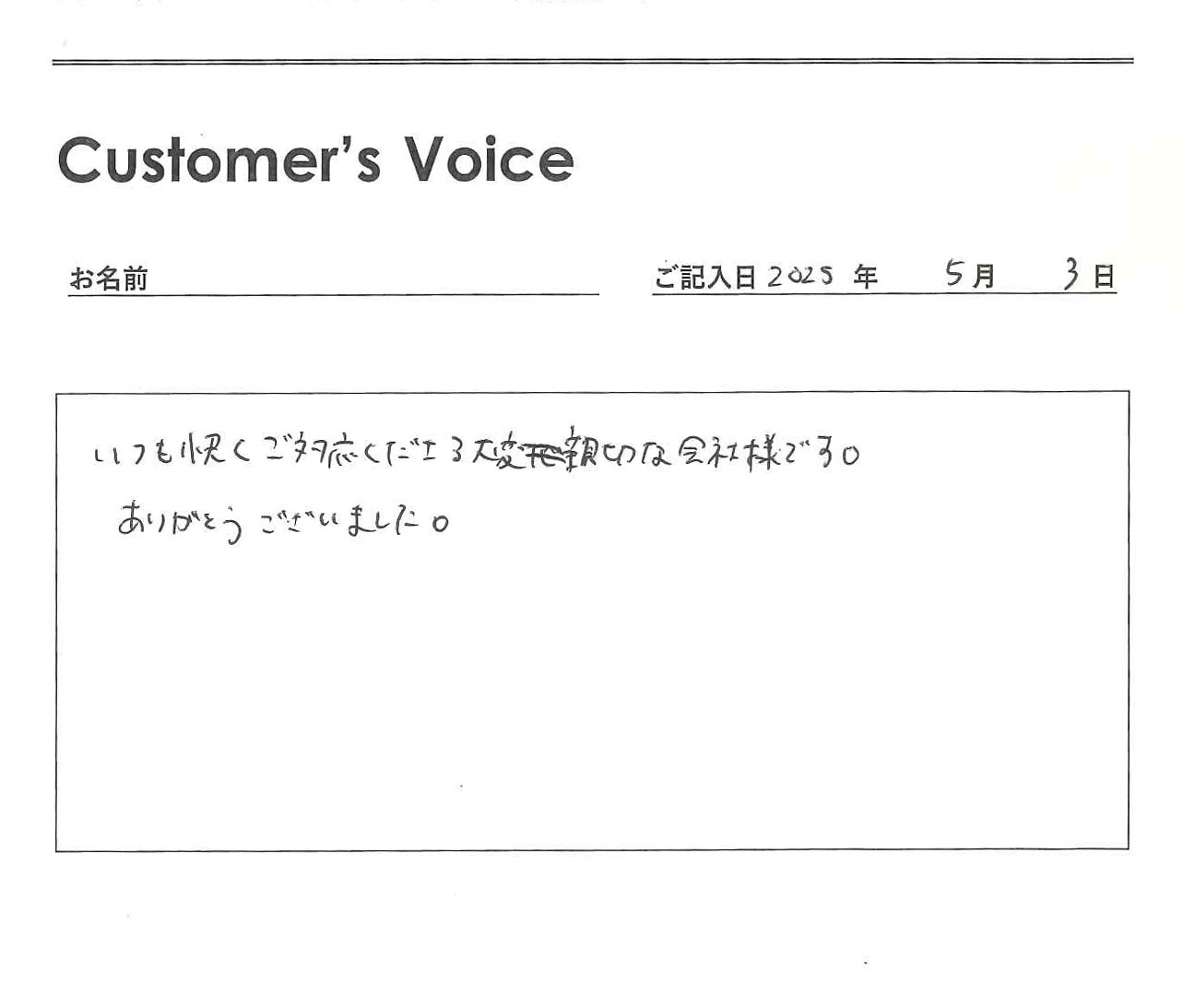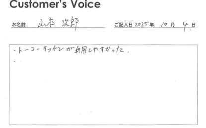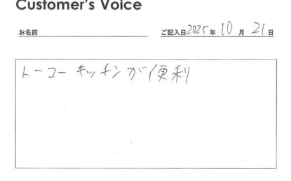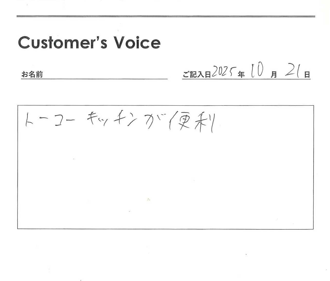 ◉トーコーキッチンをいつもご利用いただきありがとうございました。ファミリー物件にお住いの方にそう仰っていただけると格別にうれしいです。ありがとうございます!(二代目より)