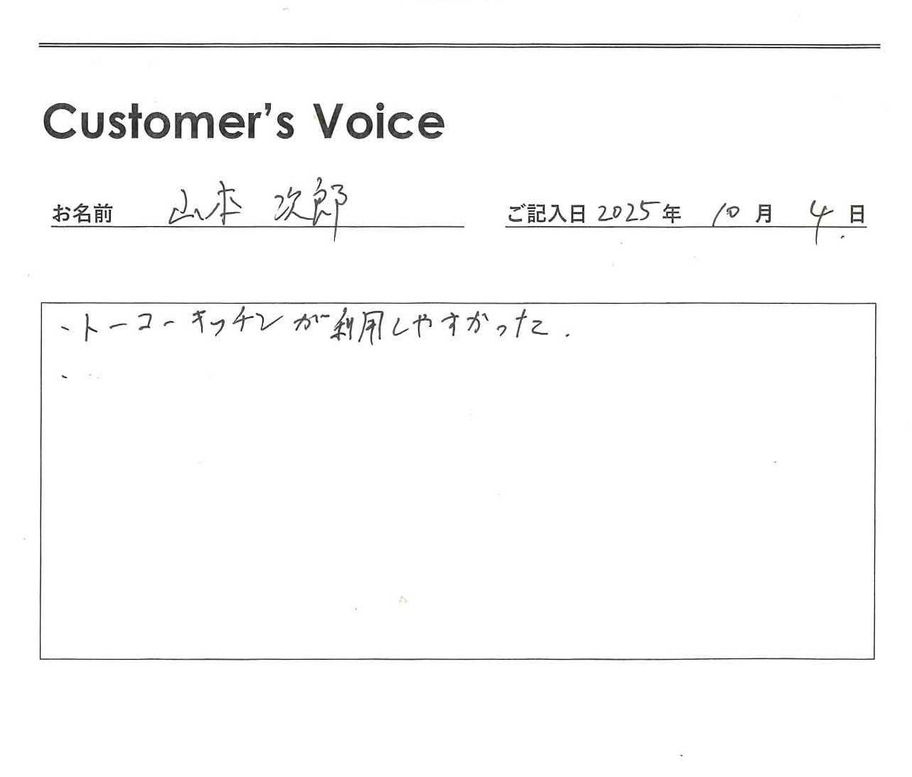 ◉トーコーキッチンを便利に使ってくれてありがとう。そう言ってもらえると、トーコーキッチンを始めて本当によかったと改めて思わせてもらえます。励みにさせてもらいます!(二代目より)
