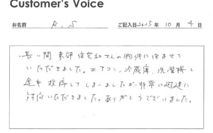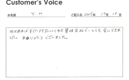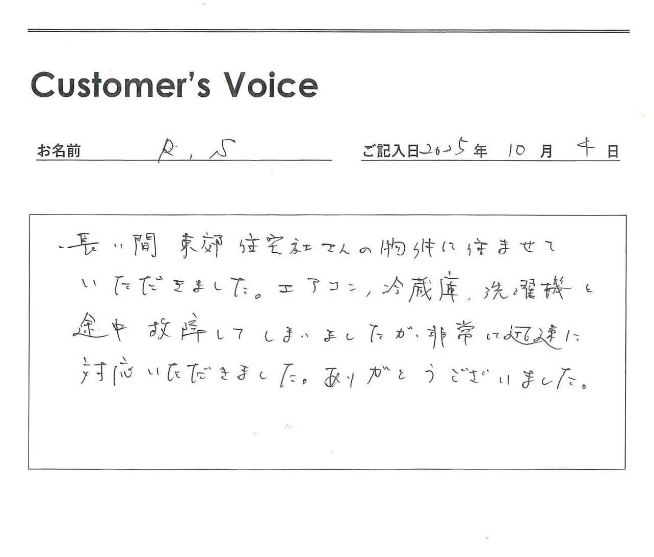 ◉こちらこそ、長期ご入居いただきありがとうございました。設備の対応を迅速に行えたのはオーナーさんのご協力のおかげです。オーナーさんに御礼をお伝えしておきますね!(二代目より)
