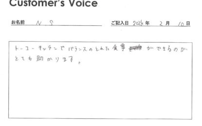 ◉Nくん、トーコーキッチンを有効活用してくれてありがとう。一人暮らしだと、バランスのとれた食事を摂り続けるのはなかなか大変だもんね。いつも使ってくれてありがとう!(二代目より)
