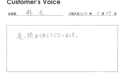 ◉こちらこそ、長期ご入居ありがとうございました。長く住んでいただくことができると、私たちの密かな自信につながります。励みにさせていただき、これからも精進します!(二代目より)