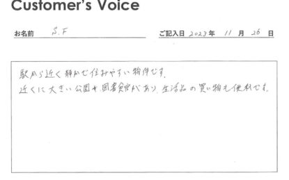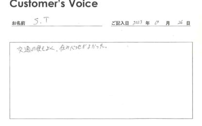 ◉駅までも近く、交通の便が抜群ですよね。住み心地もよかったということで安心しました。Sさんのお言葉をオーナーさんに伝えさせていただきます。ありがとうございました!(二代目より)