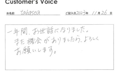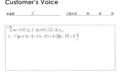 ◉Kさん、ご入居ありがとうございました。こちらこそ、またのご縁がありましたらぜひお願い申し上げます。お帰りお待ちしております。新天地でもお元気にお過ごしください!(二代目より)