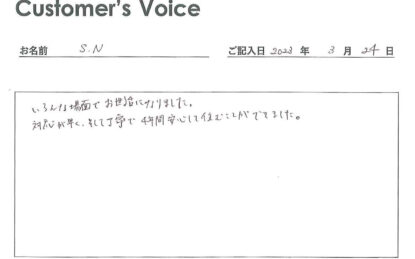 ◉こちらこそ、4年間ご入居ありがとうございました。メッセージを励みにさせていただき、これからも素早く丁寧な対応を徹底して精進します。新天地でも元気に頑張ってね!(二代目より)