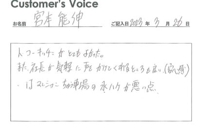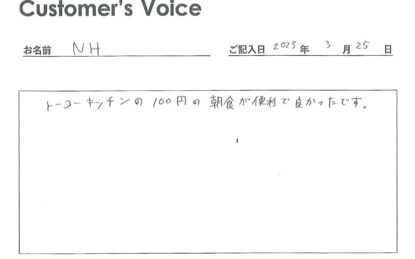 ◉トーコーキッチンを便利に使ってもらえたなんて、うれしい言葉をありがとう。トーコーキッチンを始めて本当によかったです。新生活でも朝ごはんをしっかり食べてね!(二代目より)