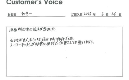 ◉ゆっきーくん、トーコーキッチンにより近い物件へと管理物件内での住み替えをありがとう。洗面所の水の流れの件、教えてくれてありがとう。さっそく確認してみます!(二代目より)