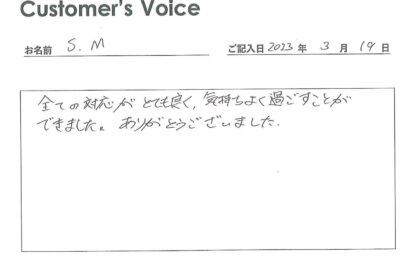 ◉Sさん、うれしいお言葉をありがとうございます。まだまだ至らないところだらけですが、Sさんのお言葉を励みにさせていただき、スタッフ一同、これからも精進いたします!(二代目より)