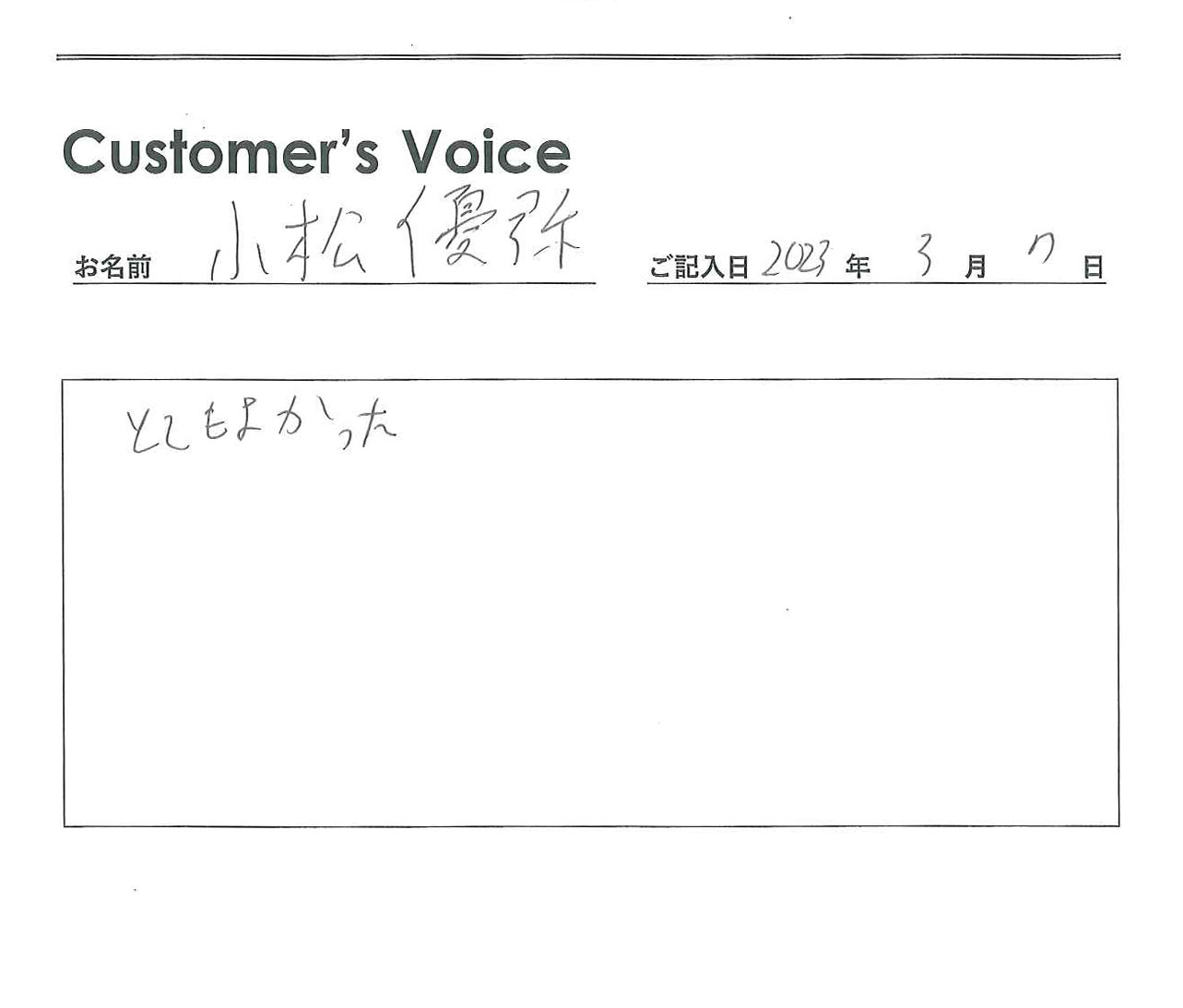 ◉こちらこそありがとうございました。迅速・丁寧なサービス提供を心掛けているので、そう言ってもらえると励みになります。就職おめでとう。活躍をお祈りしてます!(二代目より)