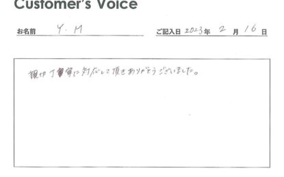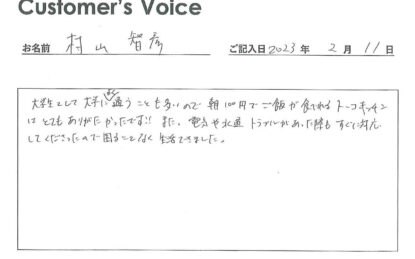 ◉こちらこそ、ご入居ありがとうございました。ご縁に感謝です。Yさんのお言葉を励みに、これからも入居者のみなさんに安心・安全な日々を送っていただけるよう精進します!(二代目より)