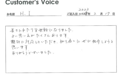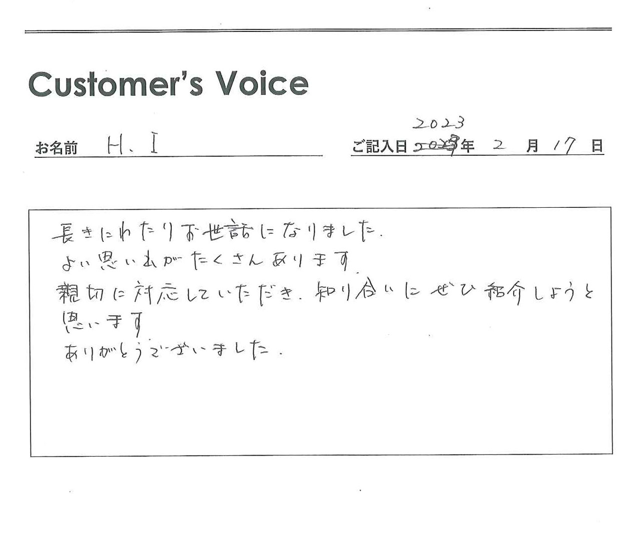 ◉先代のころより、本当に長きにわたってのご入居、誠にありがとうございました。こちらこそ、大変お世話になりました。これからもお体にお気をつけてお過ごしください!(二代目より)