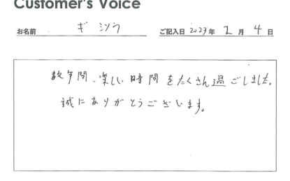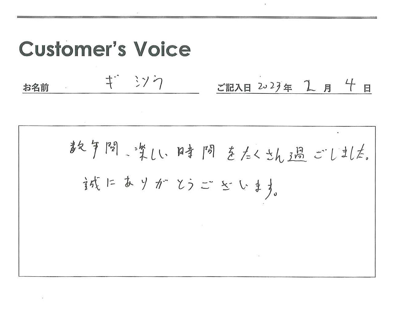 ◉ギくん、こちらこそ楽しく淵野辺生活を送ってくれてありがとう。異国の地で大変なこともあったと思うけど、前途洋々。ギくんが明るい未来を突き進む姿を応援しています!(二代目より)