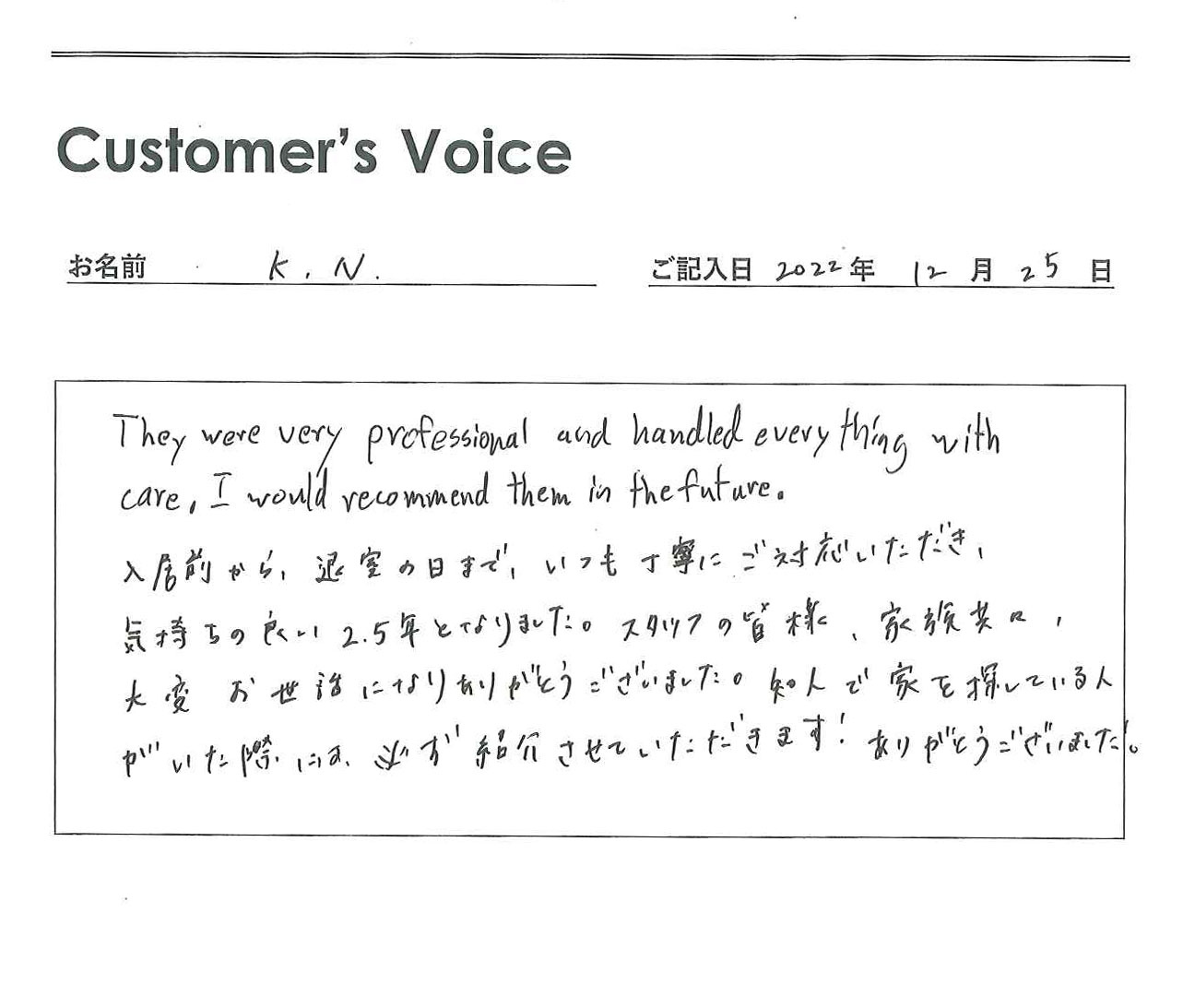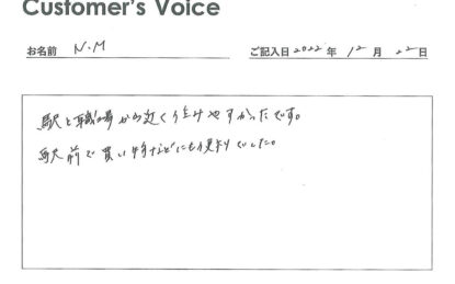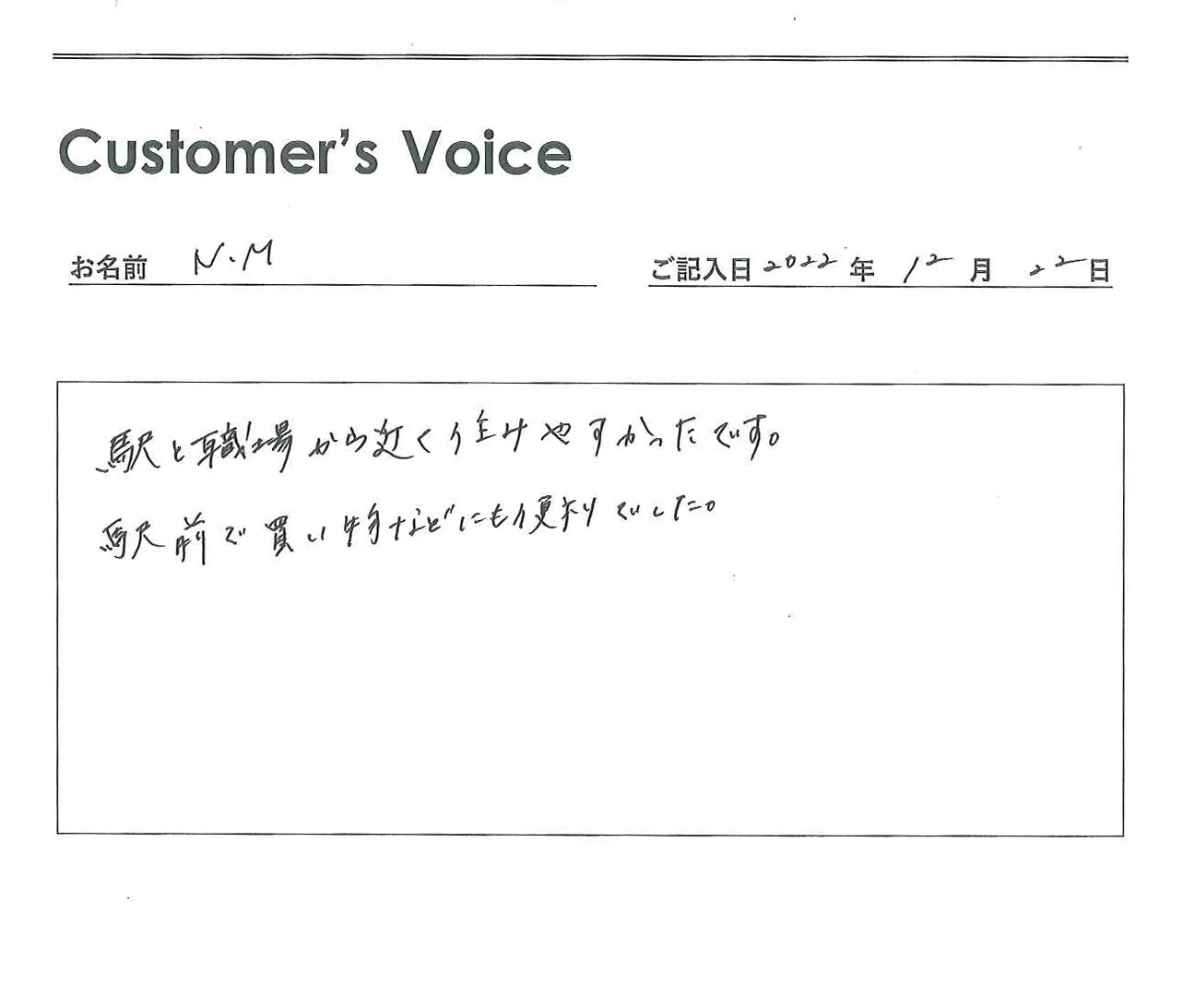 ◉この度はうれしい理由でのお引っ越しおめでとうございます。便利な住環境を堪能していただけてよかったです。新天地での生活がより素晴らしいものになりますように!(二代目より)