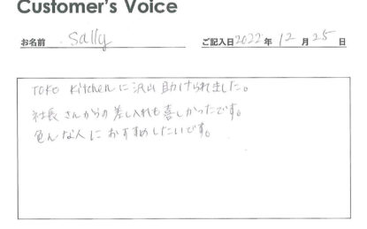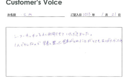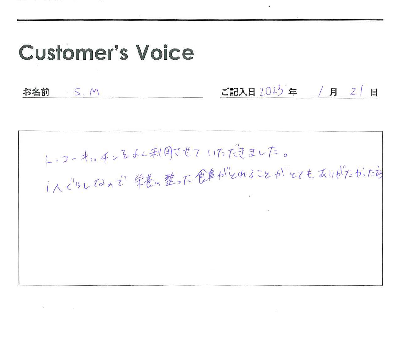◉Sさん、トーコーキッチンを存分に有効活用してくれてありがとう。一人暮らしだとついつい不足しがちな野菜もおいしくバランスよく摂れるように、これからも頑張ります!(二代目より)