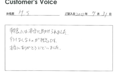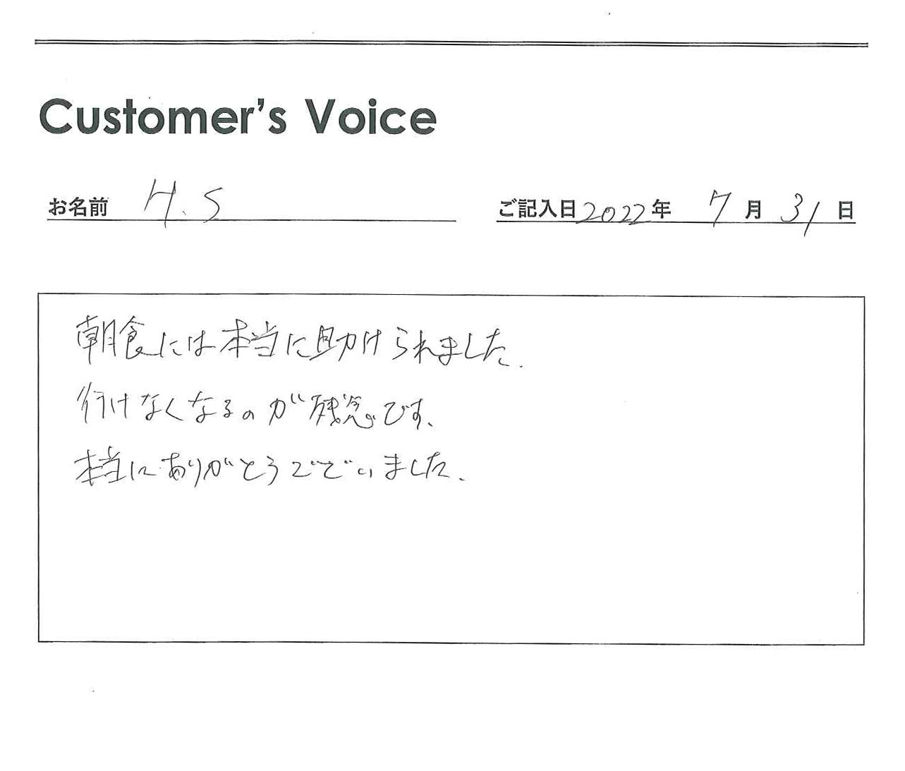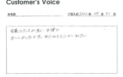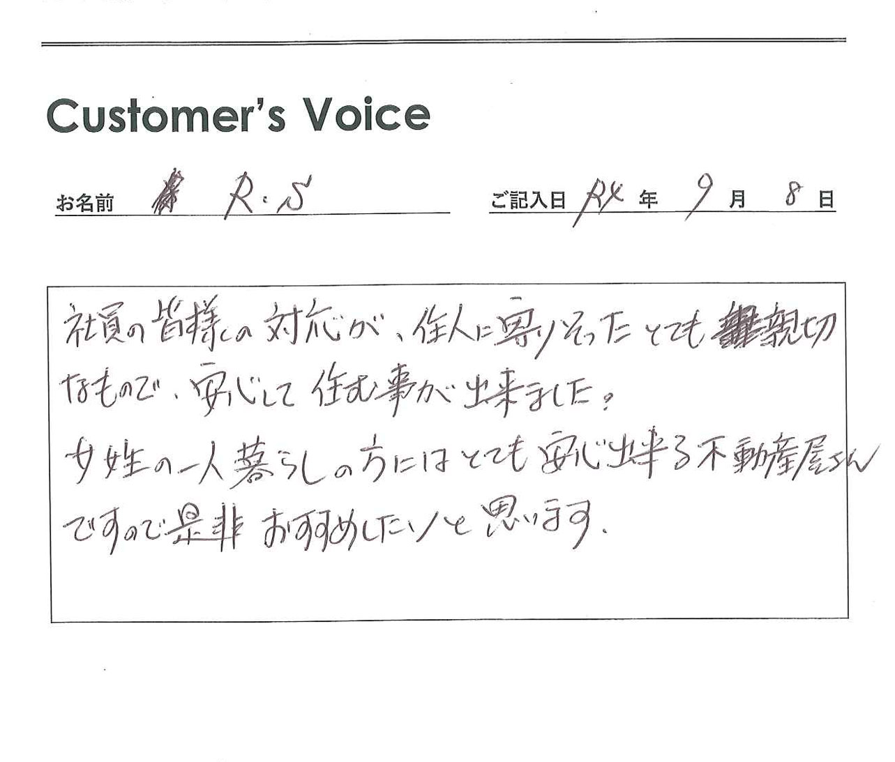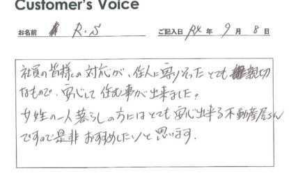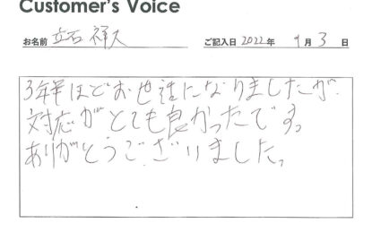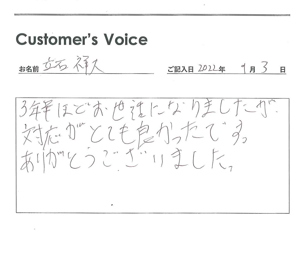 ◉立石さん、ご入居ありがとうございました。また、うれしいお言葉もありがとうございます。スタッフ一同、励みさせていただきます。新天地でもお元気にお過ごしください!(二代目より)