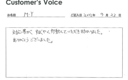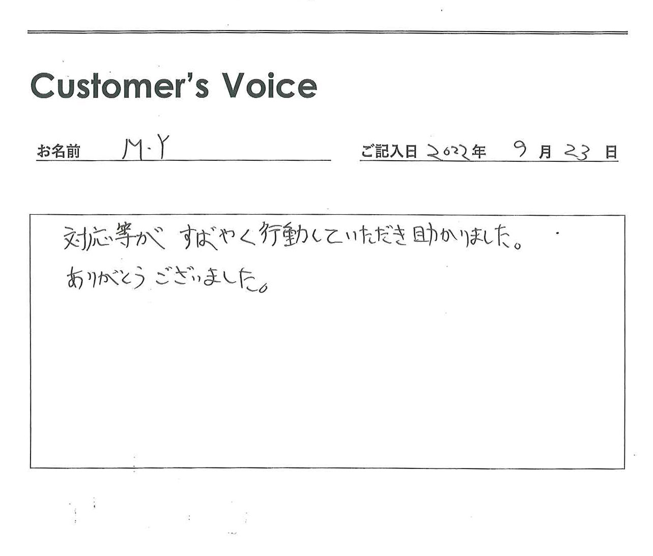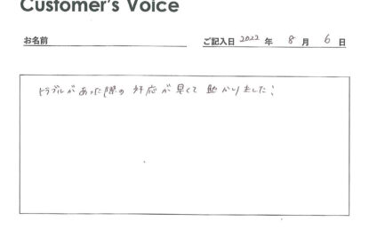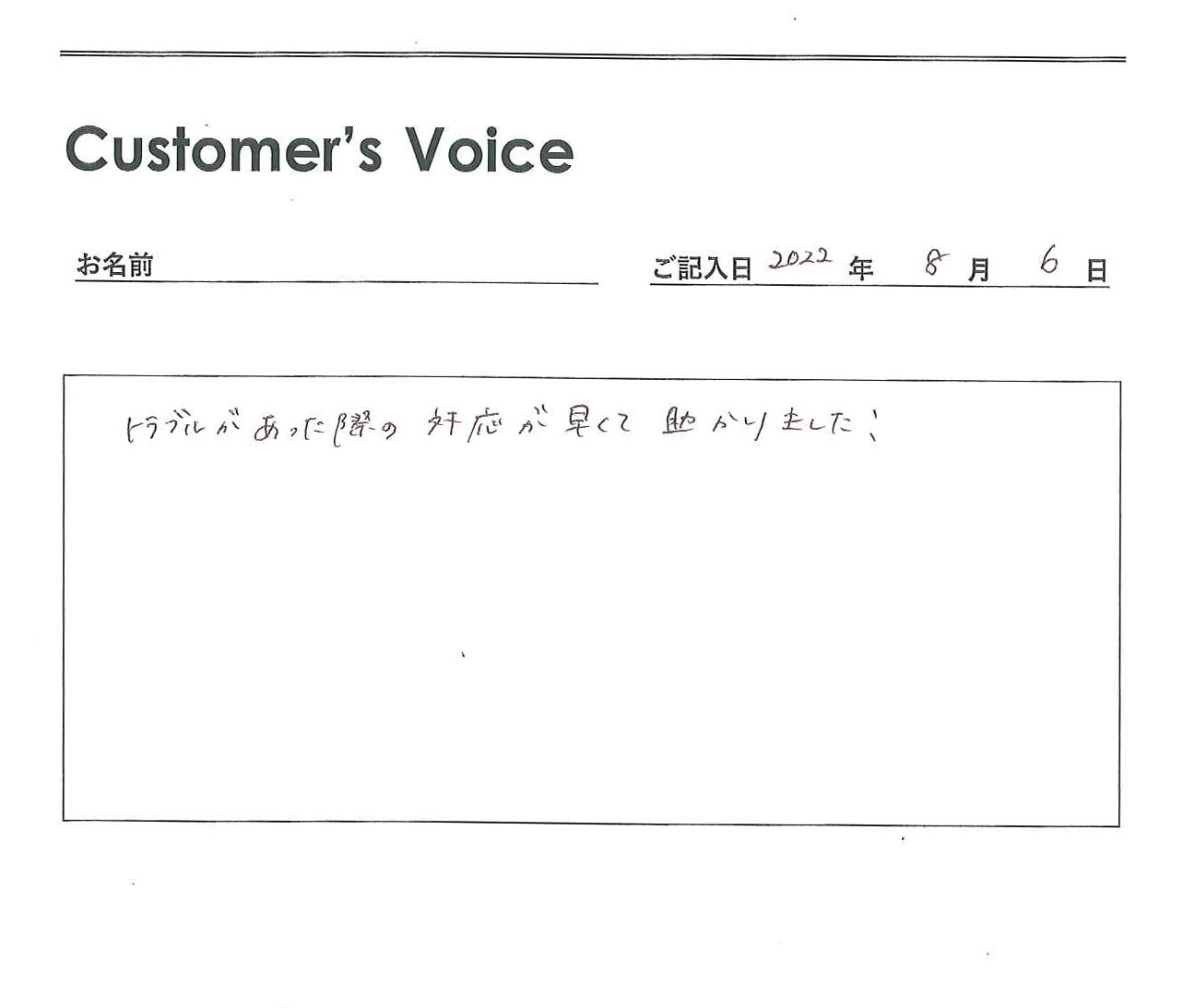 ◉Kさん、こちらこそ、ご理解ご協力をありがとうございました。いつも即解決できるかはわかりませんが、まずは即対応と迅速な状況把握を心掛けているので励みになります!(二代目より)