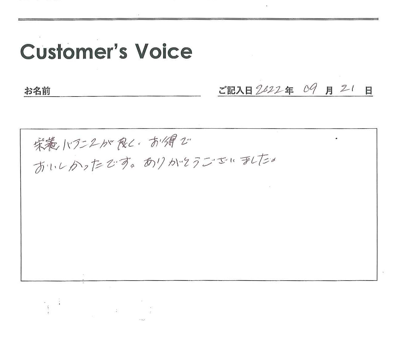 ◉「栄養バランスが良い」「お得」「おいしい」トーコーキッチンを始めて本当に良かったと改めて思わせてくれるうれしいキーワードです。こちらこそ、ありがとう。元気でね!(二代目より)