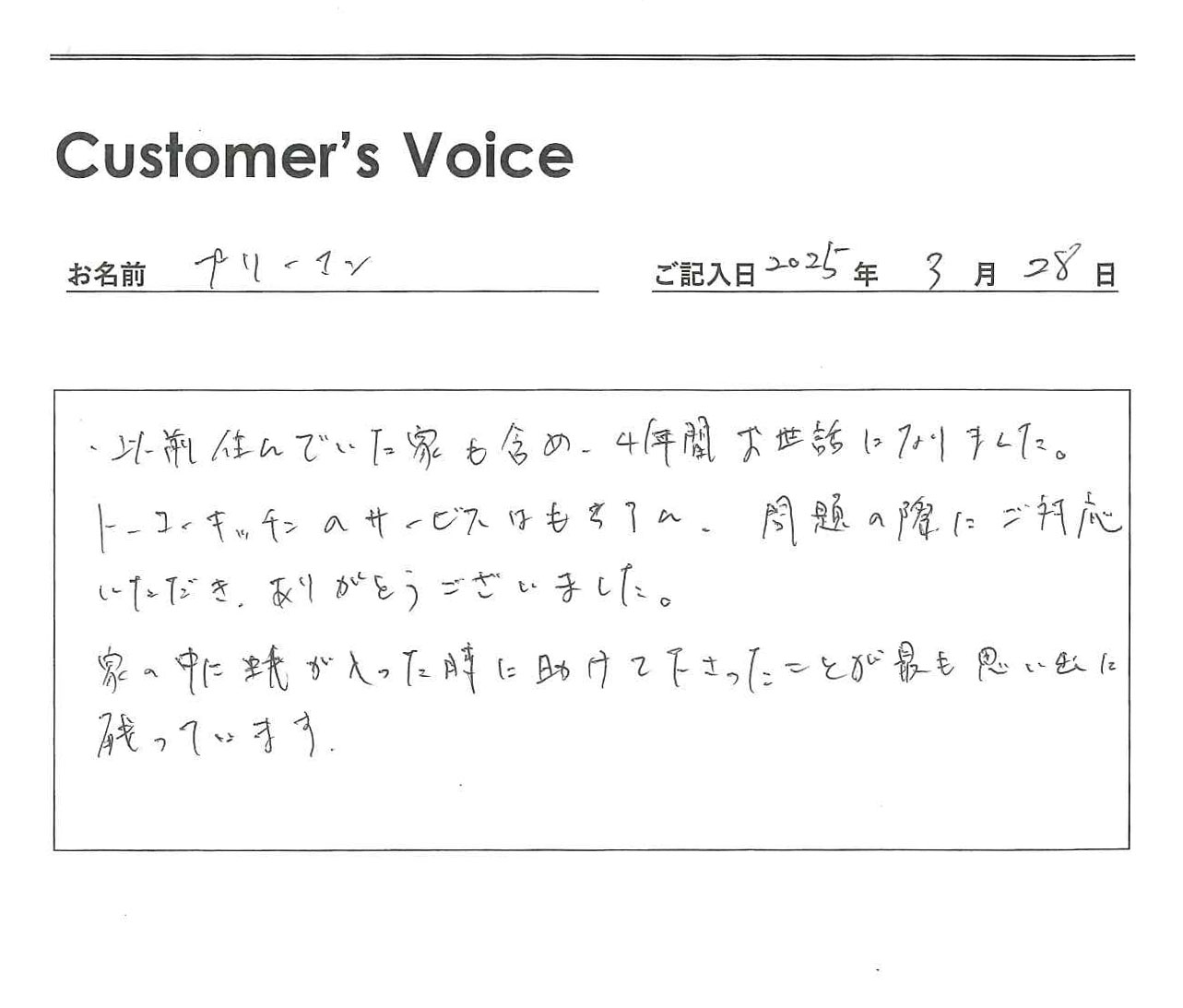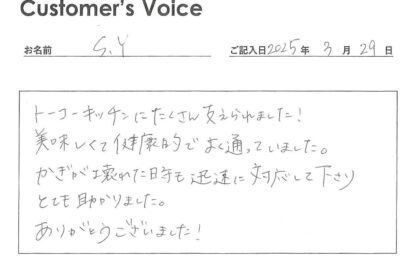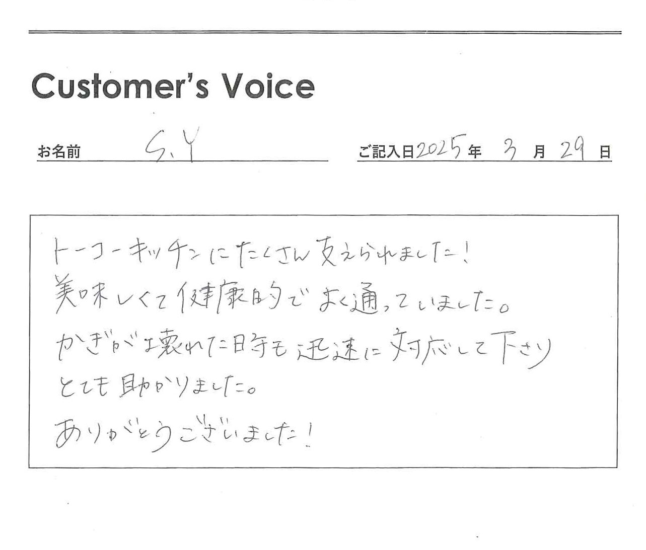 ◉Iさん、こちらこそ、この度はご縁をありがとうございました。また、いつもトーコーキッチンをご活用いただきありがとうございました。ぜひまたのご縁をお待ちしております!(二代目より)
