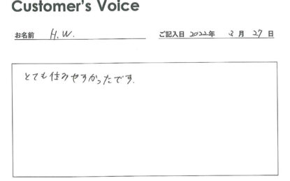 ◉Wくん、住みやすくてよかったです。建物自体は古いけど、室内はキレイだし、設備も充実してるし、駅からもスーパーからも近いもんね。オーナーさんにも伝えさせてもらうね!(二代目より)