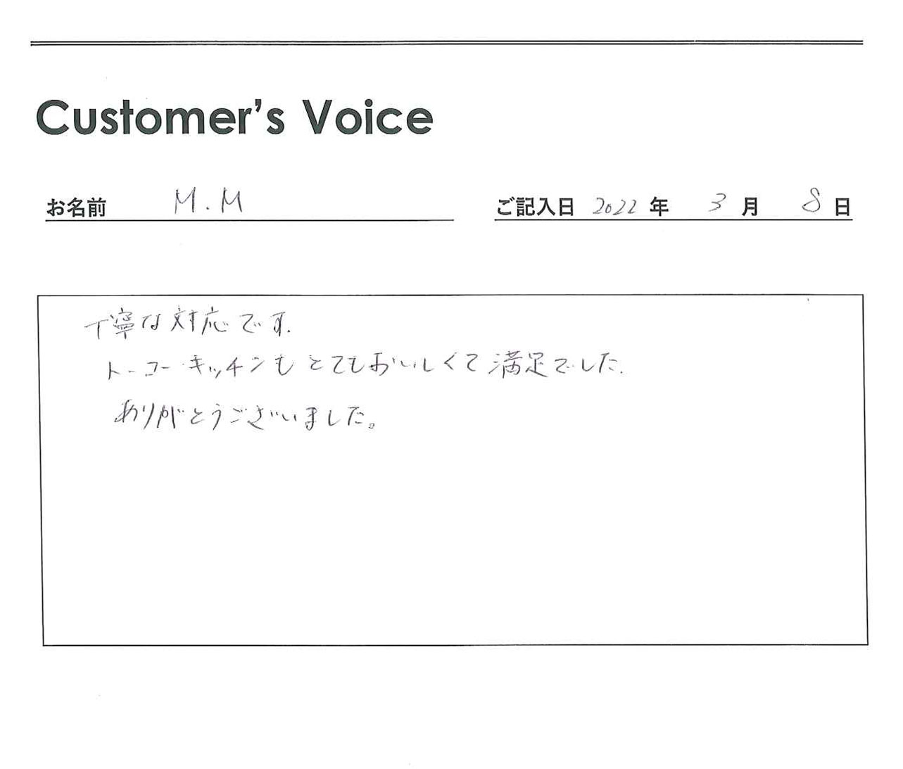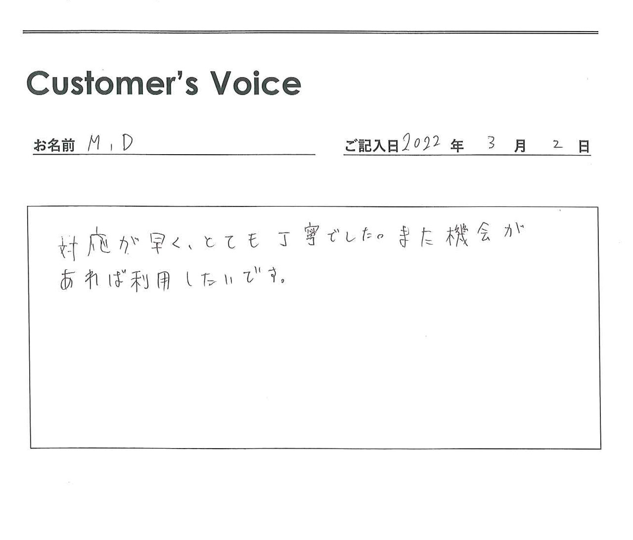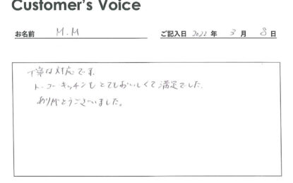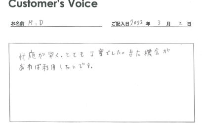 ◉Mさん、「契約してからが本当のお付き合いのはじまり」だと思っていますので、退室時に丁寧な対応と評価してもらえるのは本当に励みになります。これからも一層精進します!(二代目より)