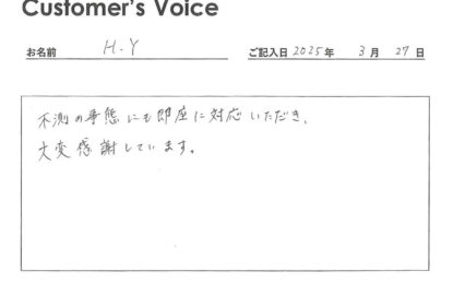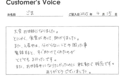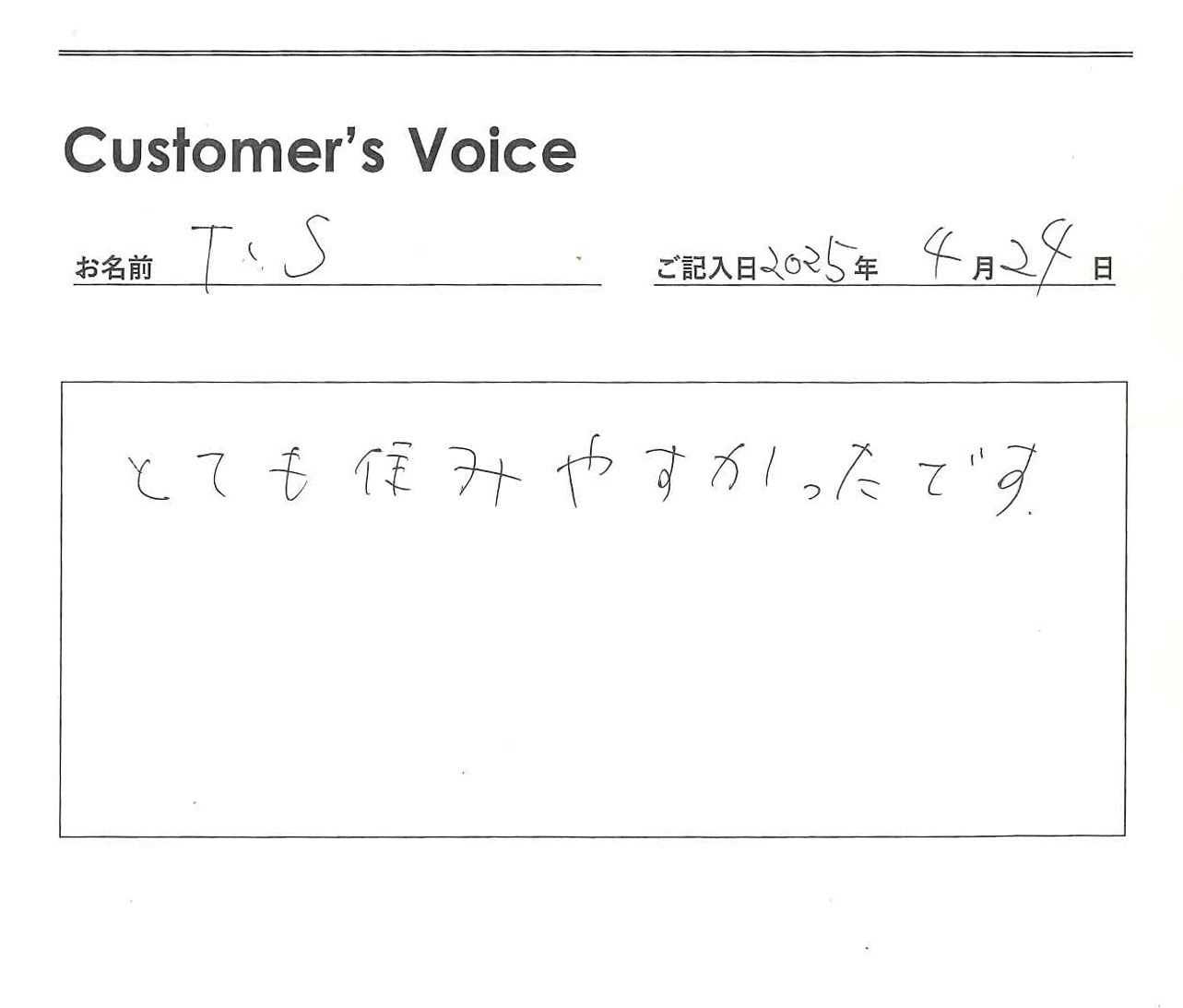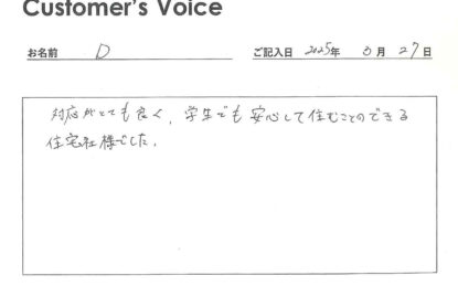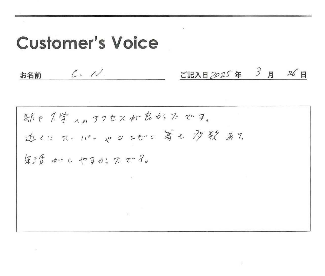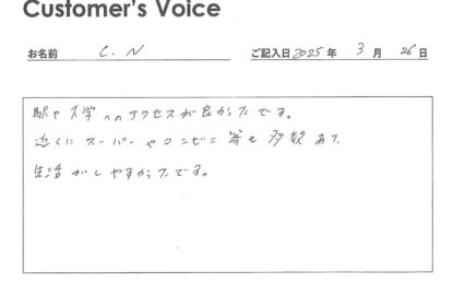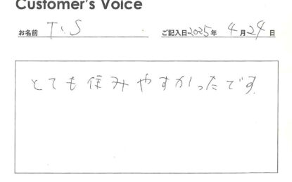 ◉Sさん、この度は東郊住宅社管理物件にご入居いただきありがとうございました。私たちにとってもSさんとのご縁に感謝しております。新天地でもお元気で頑張ってください!(二代目より)