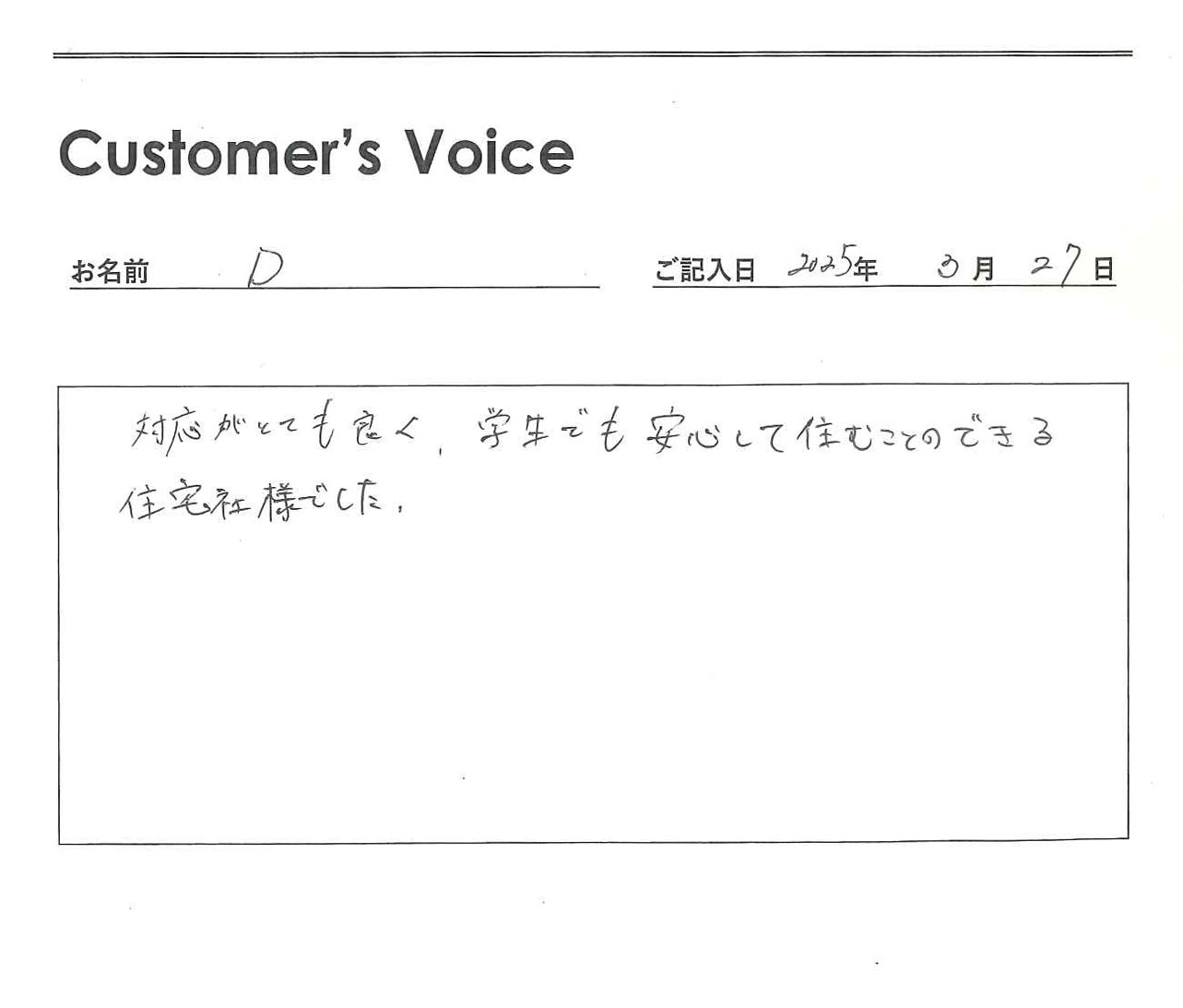 ◉短いお付き合いとなってしまいましたが、ご入居ありがとうございました。住みやすかったとのうれしいお言葉が聞けて何よりです。オーナーさんに報告させていただきます!(二代目より)