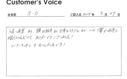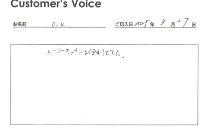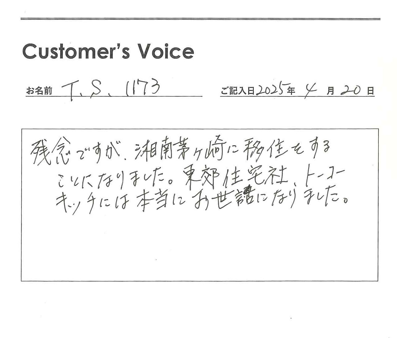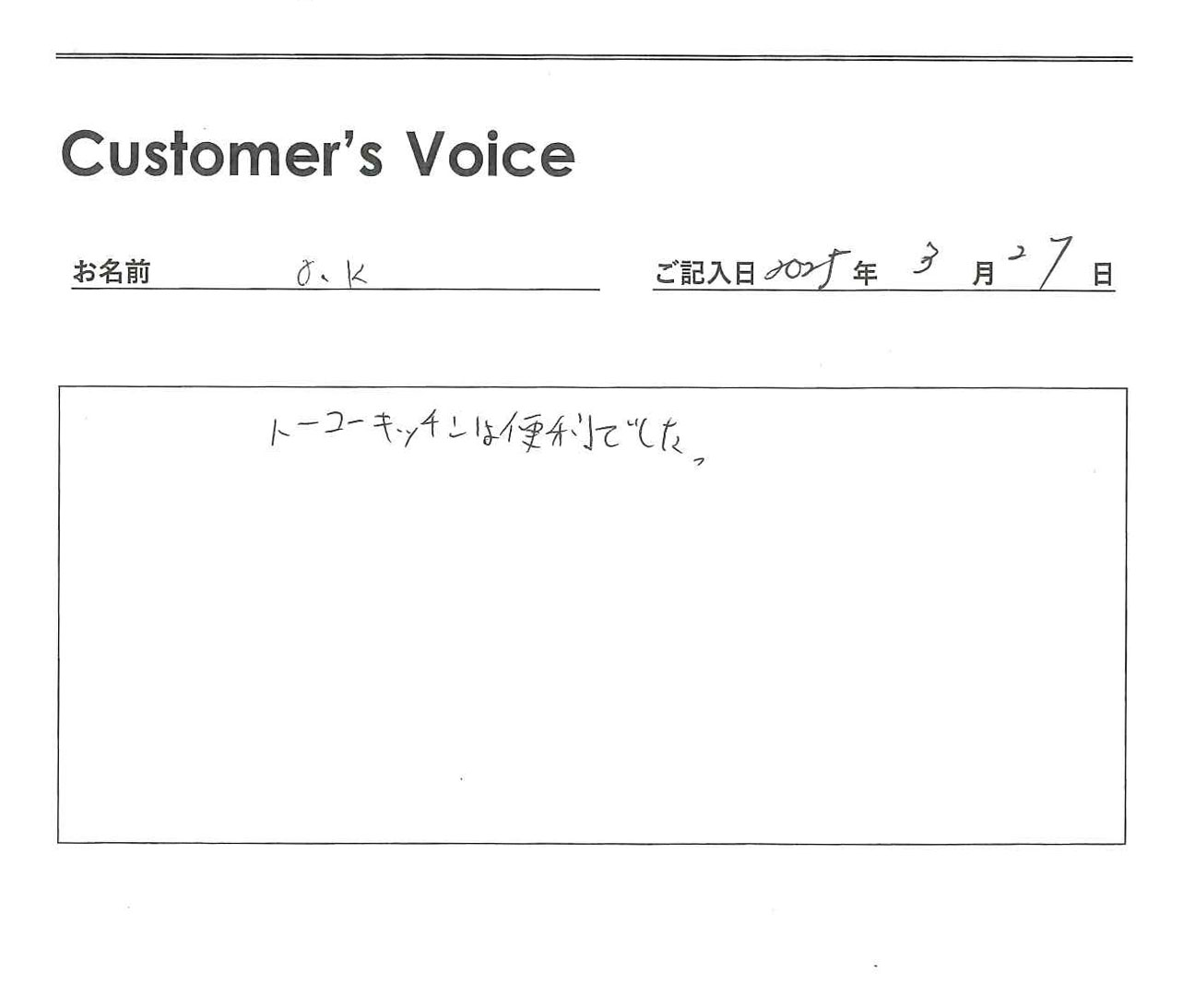 ◉こちらこそ、いつも快くご理解ご協力くださり、本当にありがとうございました。また、トーコーキッチンもご利用ありがとうございました。またのご縁をお待ちしております!(二代目より)