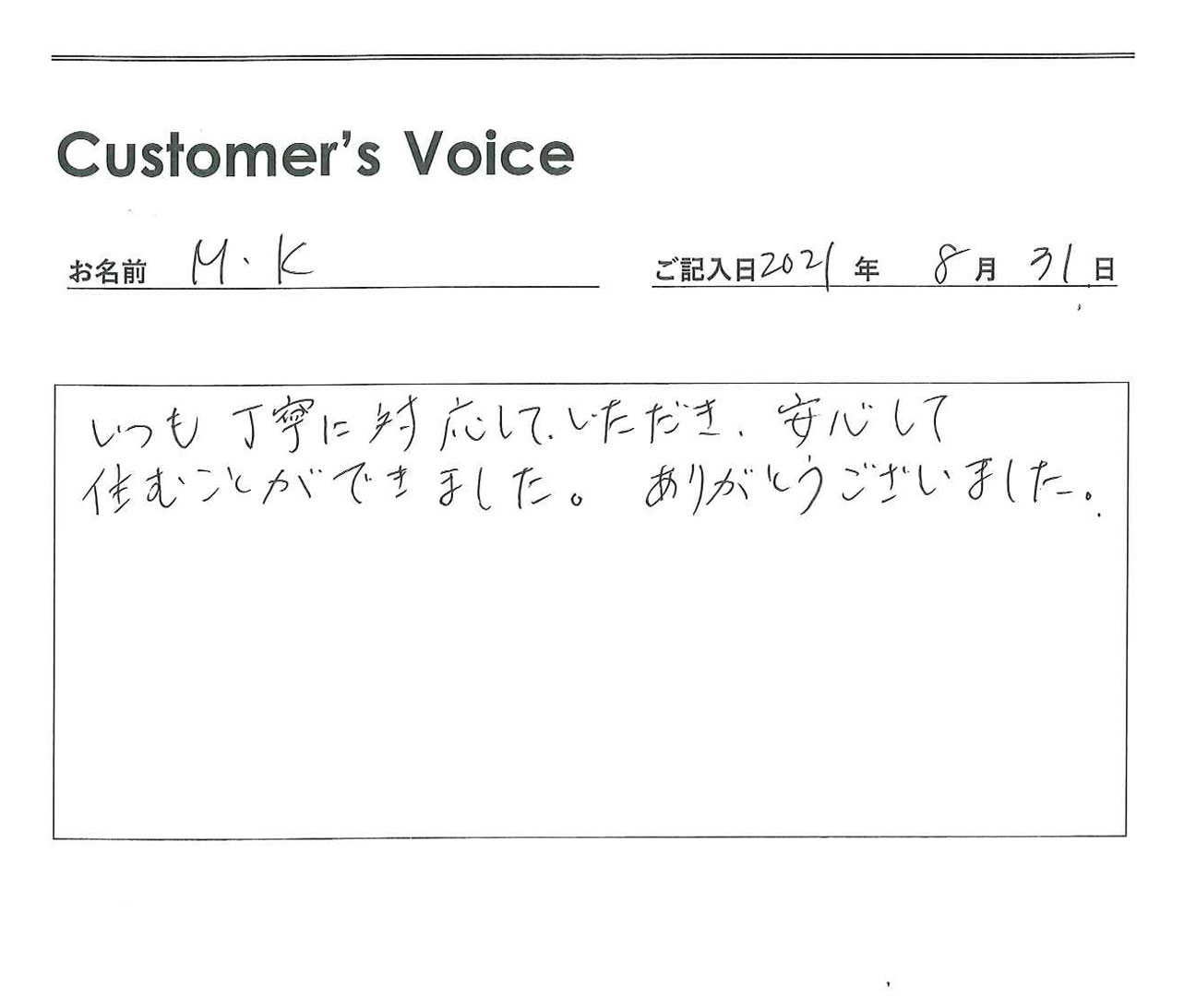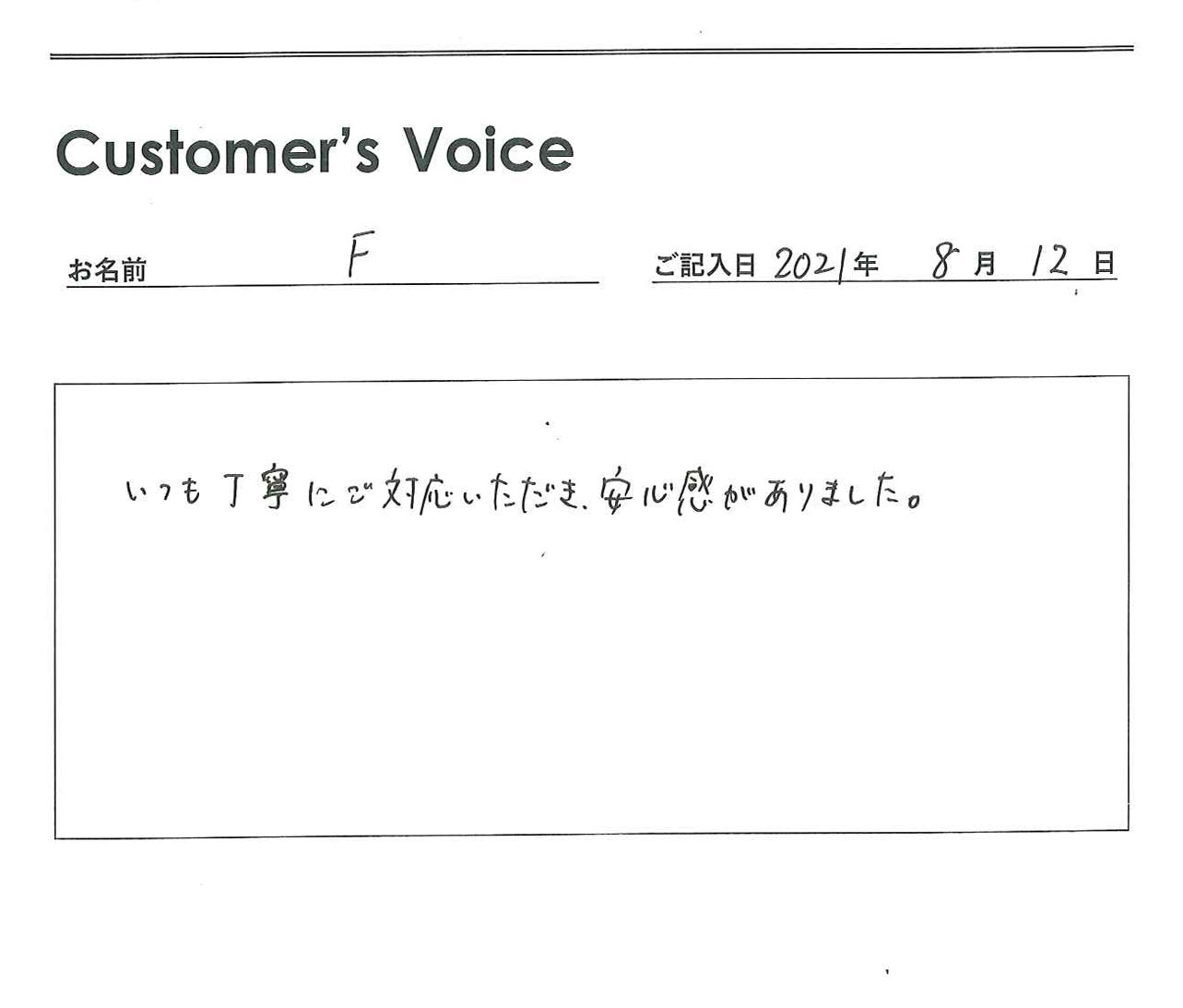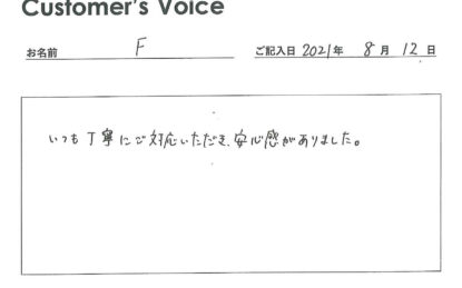 ◉うれしいお言葉ありがとうございます。契約してからが本当のお付き合いのはじまりですので、安心・安全な暮らしを変わらずに提供し続けるよう、これからも精進します!(二代目より)