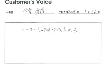◉千葉さん、うれしいお言葉ありがとうございます。「すごく良かった」だなんて、不動産屋冥利に尽きます。これからも入居者の皆さんに喜んでいただけるよう精進します!(二代目より)
