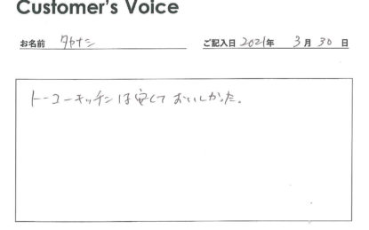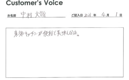 ◉いつもトーコーキッチンを利用してくれてありがとう。そうやって便利に使ってもらえた話を聞かせてもらう度に、トーコーキッチンを始めて本当によかったと心から思うよ!(二代目より)