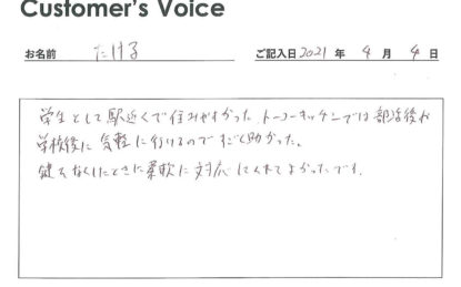 ◉たけるくん、トーコーキッチンを便利に活用してくれてありがとう。部活や授業の後はヘロヘロに疲れている上にすごい腹ペコだから、それから自炊するのって大変だもんね!(二代目より)