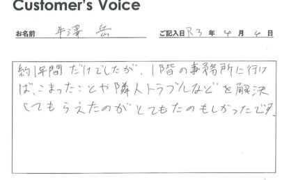 ◉牛澤くん、こちらこそ短いお付き合いでしたが、ご入居ありがとうございました。私たちの存在がお役に立てたのなら幸甚です。ありがとうございます。新天地でもお元気で!(二代目より)