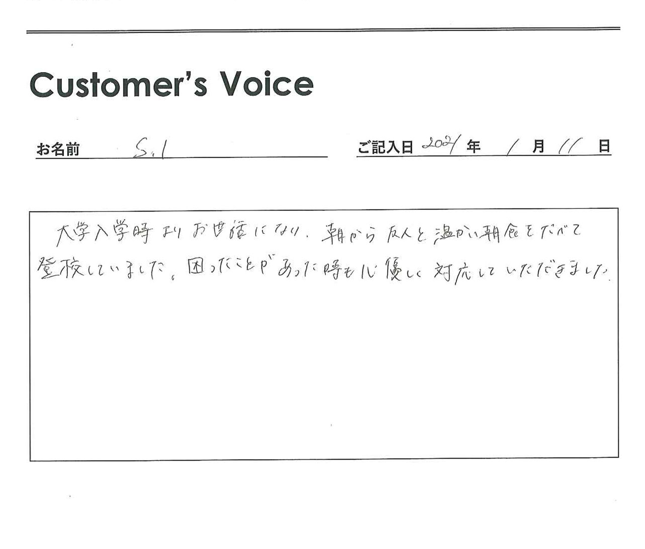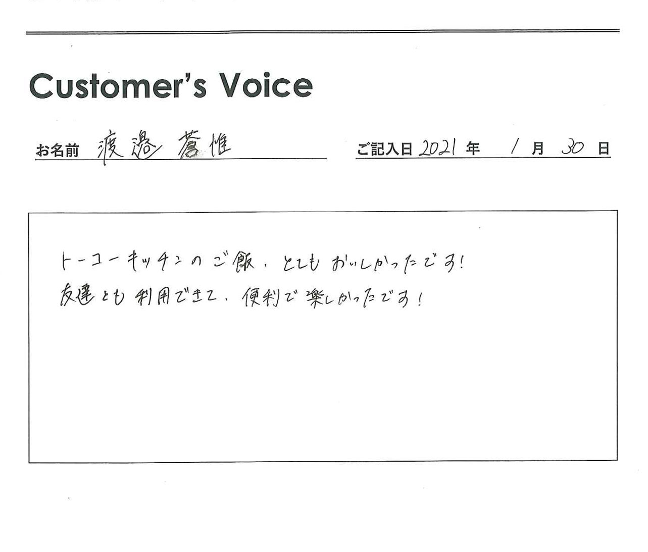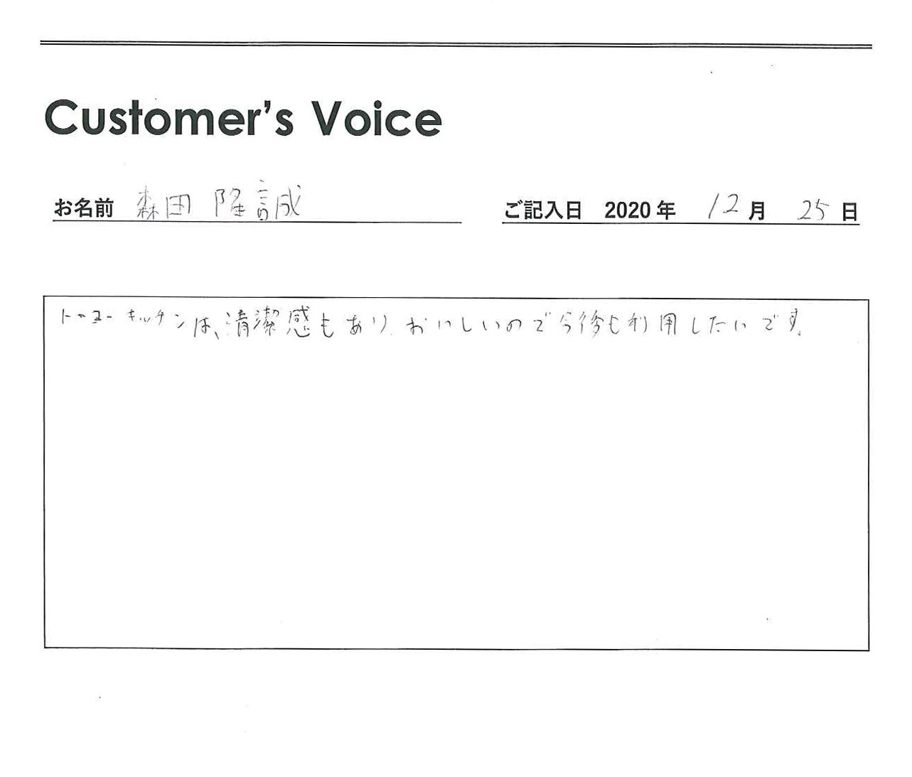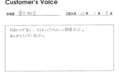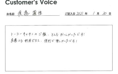 ◉うれしいコメントをありがとう。安心して暮らせたと言ってもらえるようなお手伝いができて本当によかったです。トーコーキッチンもいつも利用してくれてありがとう!(二代目より)