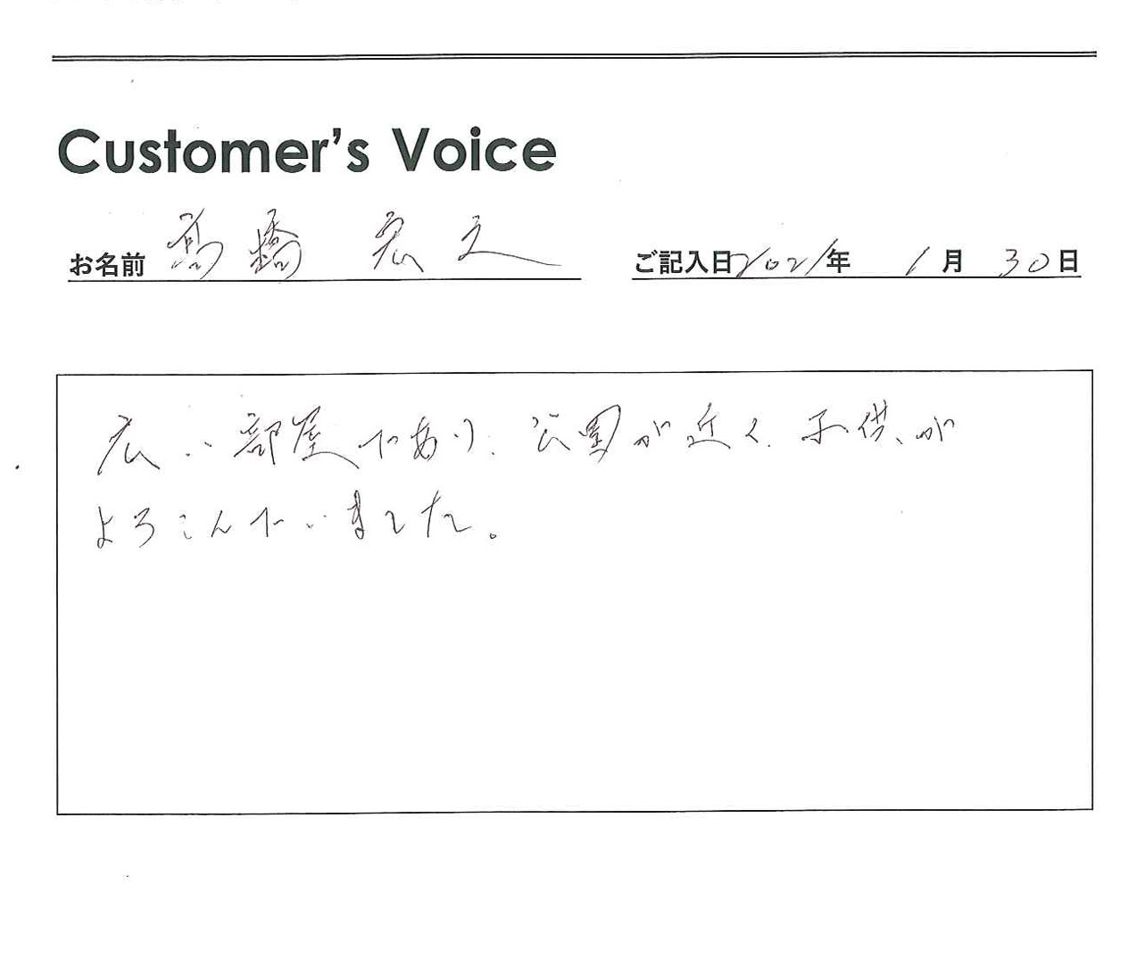 ◉高橋さま、ご入居ありがとうございました。そうなんですよね、県外からはるばる遊びに来る方が多い公園が徒歩圏ですもんね。お子さまに喜んでもらえてよかったです!(二代目より)